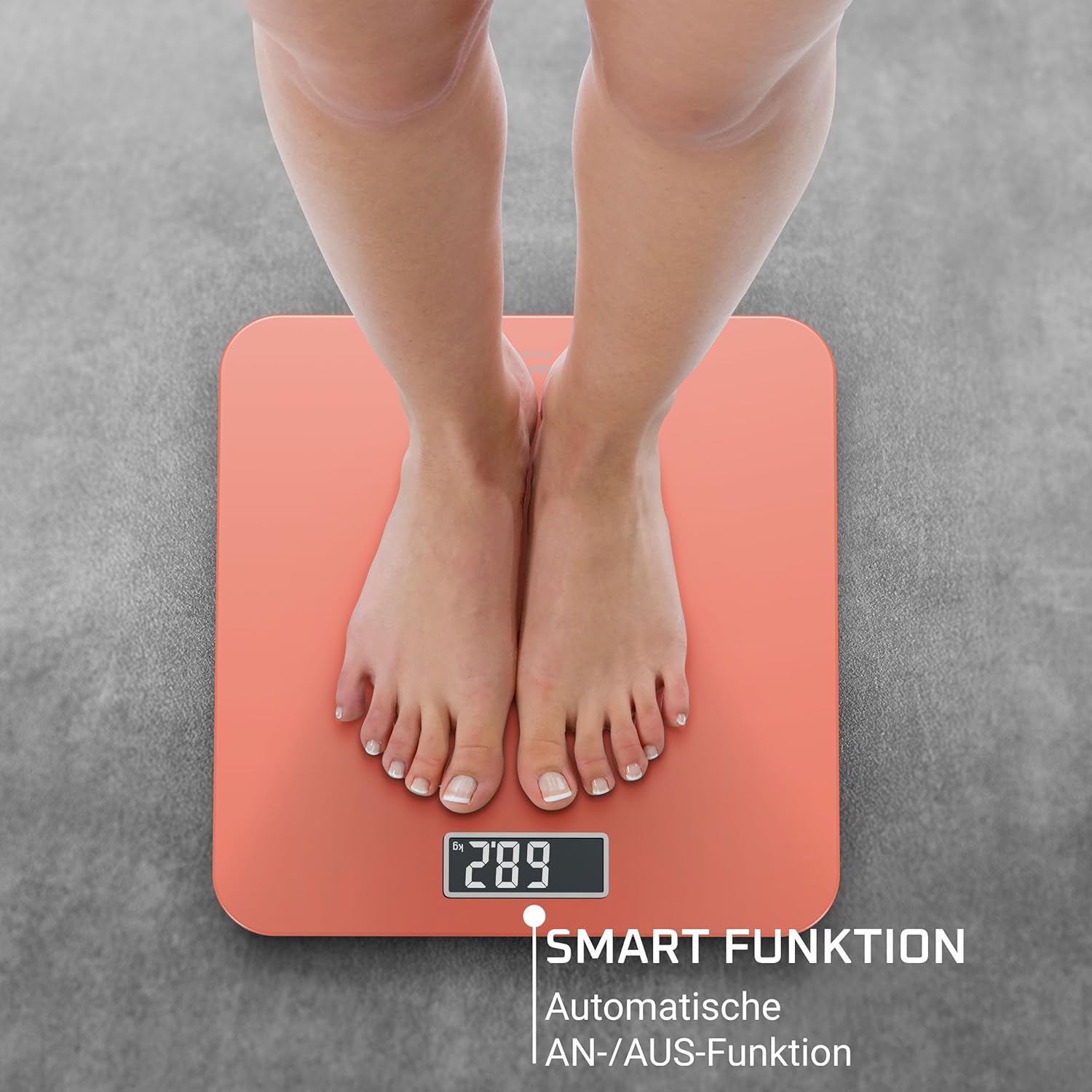 Bequeme Benutzung: Einfach ablesbares LCD-Display mit breiter Glasplatte (30 x 30 cm) für bis zu 160 kg und mit 100-g-Schritten Einfaches Verstauen: Die schmale Waage ist nur 2,2 cm hoch - ideal zum diskreten Verstauen, wenn sie nicht verwendet wird Clevere Funktionen: Die Waage schaltet sich bei jeder Verwendung automatisch ein und aus und bietet die Wahl zwischen den metrischen (kg) und den angloamerikanischen (st, lb) Einheiten Einfache Reinigung: Die glatte Hartglasplatte lässt sich einfach reinigen und sorgt so für optimale Hygiene Sofort einsatzbereit: Sofort verwendbare Waage dank der beiden AAA-Batterien, die im Lieferumfang enthalten sind | قیمت یورویی : 19.99€