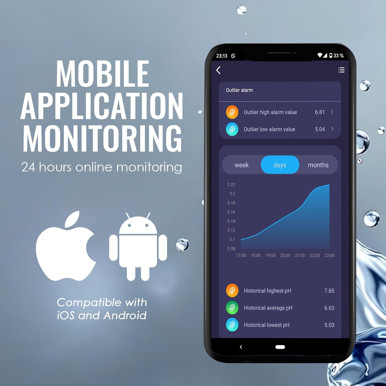 💧Kontinuierliche Überwachung rund um die Uhr: Die pH-Monitorsonde für Aquarien kann dauerhaft in die Nährlösung für Hydrokulturpflanzen eingetaucht werden und überwacht kontinuierlich EC, TDS, SG, Salzgehalt, Temperatur und pH-Wert. Zeitnahe und genaue Daten helfen Ihnen, den Status Ihres Hydrokultursystems zu erfassen und die Wachstumsbedingungen Ihres Aquariums rechtzeitig zu optimieren. 💧WLAN-Konnektivität für Echtzeitaufzeichnung: Verbinden Sie Ihr Smartphone über WLAN und laden Sie die Tuya-App herunter. So können Sie jederzeit und überall Echtzeitaufzeichnungen abrufen und keine Änderungen verpassen. Das Messgerät gibt einen Alarm aus, sobald die Messdaten den voreingestellten Grenzwert überschreiten oder unterschreiten. 💧30-Tage-Datenkurvenanzeige: In der App können Sie die Datenkurve jedes Parameters der letzten 30 Tage einsehen und so Vergleiche und Analysen durchführen. 💧30-Tage-Datenkurvenanzeige: In der App können Sie die Datenkurve jedes Parameters der letzten 30 Tage einsehen unBequeme Bedienung und Installation: Dieses pH-Messgerät für Hydrokulturen lässt sich einfach an der Wand montieren und ist einfach einzurichten und zu bedienen. Selbst Hobbygärtner, die neu in der Hydrokultur sind, können schnell loslegen. Dank der übersichtlichen Benutzeroberfläche und des intuitiven Displays haben Sie wichtige Daten zur Wasserqualität jederzeit im Blick und können so Ihre Gartenarbeit reibungslos durchführen. 💧Hohe Präzision: Dieses Salzmessgerät verfügt über ein integriertes automatisches Temperaturkompensationssystem (ATC), das den pH-Wert der Probe im Temperaturbereich von 0–50 °C genau bestimmen kann. Es verfügt über einen einfachen automatischen 3-Punkt-Kalibrierungsprozess mit Pufferlösung, der nur einen Knopfdruck erfordert und präzise Messungen und eine vereinfachte Einrichtung für den Benutzer gewährleistet. | قیمت یورویی : 66.99€