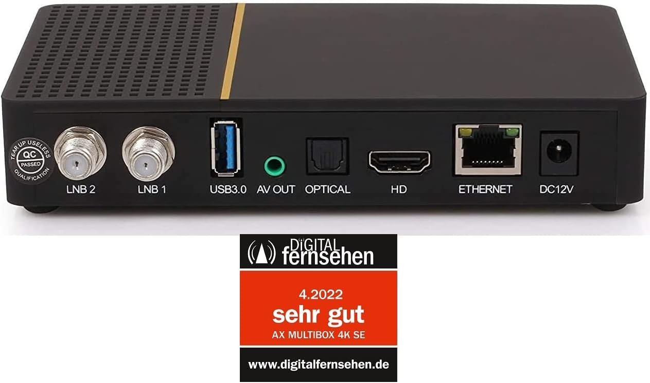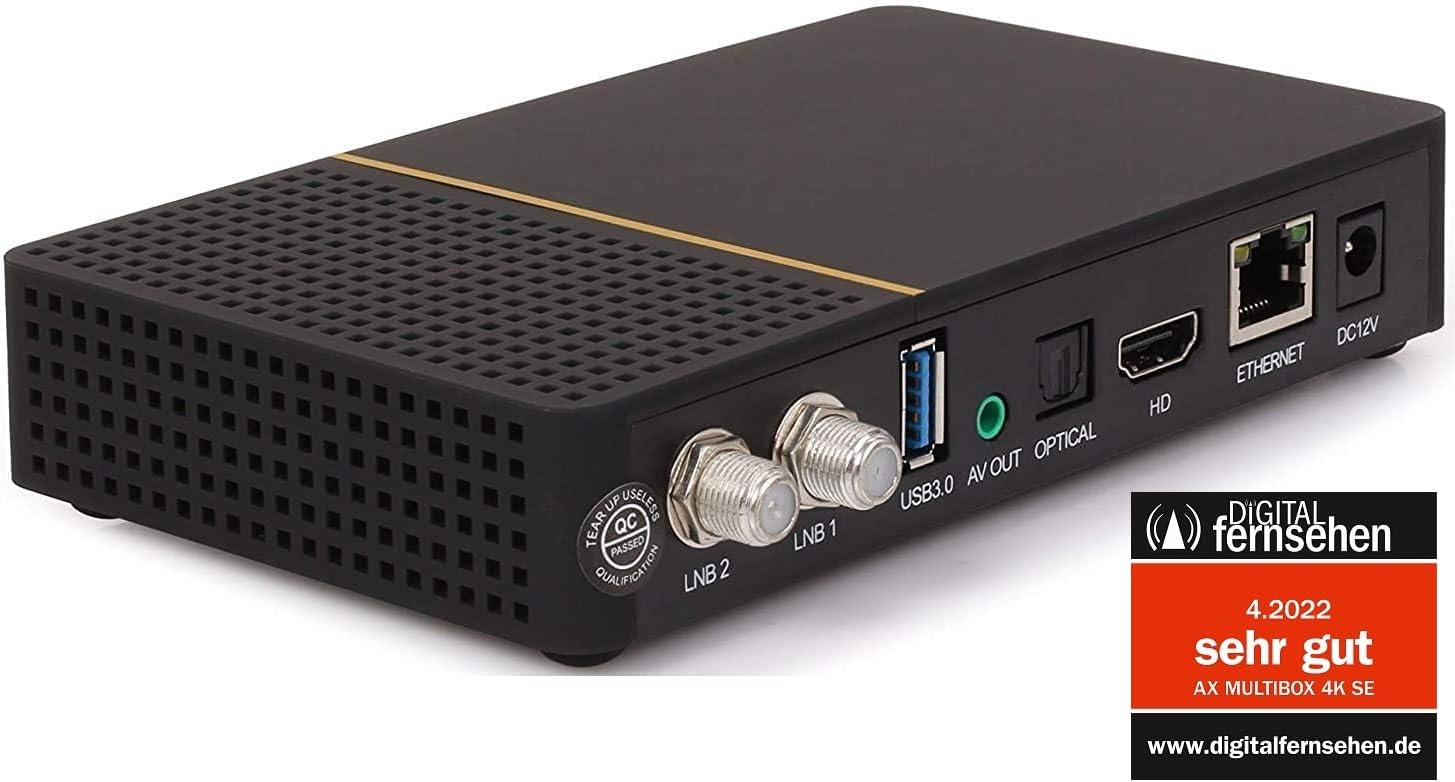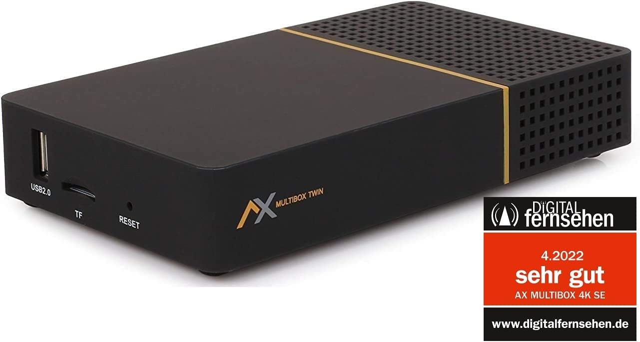 [Test: SEHR GUT *] AX Multibox Twin SE (Second Edition mit WiFi) 4K UHD E2 Linux Sat Receiver mit PVR Aufnahmefunktion Timeshift, UNICABLE, USB, LAN, WLAN, HDMI, H.265 HDR, Astra Hotbird Sortiert | قیمت یورویی 140.44€
