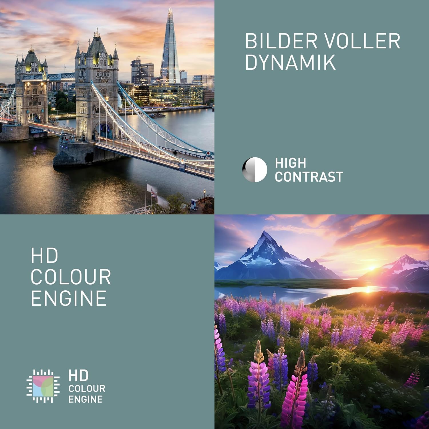 HD-BILDLEISTUNG: Erleben Sie eine verbesserte visuelle Qualität mit High Definition- und Hochkontrast-Technologie, für scharfe, schöne Bilder und ein beeindruckendes Seherlebnis USB MEDIA PLAYER: Steuern Sie mit dem integrierten USB Media Player, was auf Ihrem Fernseher läuft, für einen schnellen Zugriff auf persönliche Inhalte wie Musik, Videos und Fotos über ein USB-Laufwerk BILDER MIT HOHEM KONTRAST: Genießen Sie eine verbesserte Kontrastleistung mit tieferen Schwarztönen, helleren Weißtönen und einer erweiterten Farbpalette für realistischere, dynamischere Bilder FLEXIBLE ANZEIGEMÖGLICHKEITEN: Nutzen Sie Ihren Fernseher problemlos in jedem Raum, dank HDMI-Unterstützung und dem HD Triple Tuner mit integrierter DVB-Terrestrial-, Satelliten- und Kabelunterstützung WANDMONTAGEOPTION: Sparen Sie Platz mit der Wandmontage dieses HD TVs, was ihn zu einer großartigen Wahl für die Maximierung der Stellfläche macht und die Notwendigkeit eines Tisches oder eines sperrigen Ständers überflüssig macht KOMPAKTER, DÜNNER RAHMEN: Werten Sie jeden Raum mit dem schlanken Bildschirmrand auf, der sich mit seinem eleganten Erscheinungsbild nahtlos in jeden Innenraum einfügt | قیمت یورویی : 154€