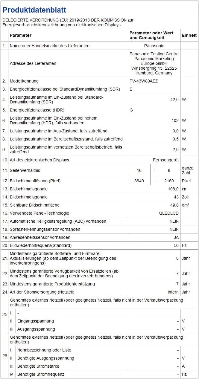 Panasonic Premium TV-43W80AEZ, W80 Serie 43 Zoll 4K Ultra HD QLED Smart TV, 2024, Fire TV, Dolby Vision & Atmos, Game Mode Plus, Alexa Sprachsteuerung, Airplay, Schwarz 43" | قیمت یورویی 450.02€