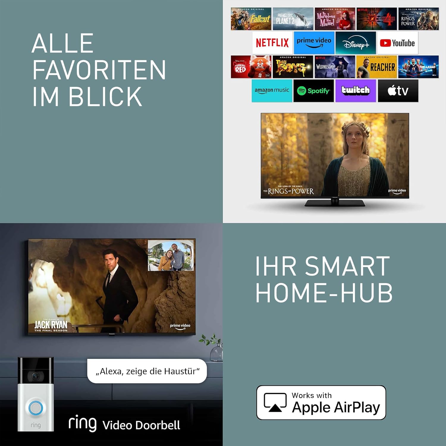 HCX-PROZESSOR: Erleben Sie atemberaubenden Kontrast, Klarheit und lebensechte Farben mit dem HCX-Prozessor dieses UHD-Fernsehers und erhalten Sie eine Bildqualität, die der Vision des Filmemachers entspricht MULTI HDR: Genießen Sie optimierte Helligkeit, Kontrast und Farbe mit Dolby Vision, HLG, HDR10 & HDR10+, die Bilder so darstellen, wie es der Regisseur beabsichtigt hat SURROUND SOUND PRO & DOLBY ATMOS: Erhöhen Sie Ihr Filmerlebnis mit Dolby Atmos und Surround Sound Pro auf diesem LED-Fernseher und holen Sie sich das Kino-Audioerlebnis nach Hause FIRE TV: Schauen Sie sich alle Ihre Lieblingssendungen, Filme und Live TV über den intuitiven Startbildschirm dieses 4K Fire TVs an, inklusive personalisierte Empfehlungen und Merklisten für bis zu 6 Benutzerprofile GAME MODE PLUS: Steigern Sie Ihr Erlebnis mit Game Mode Plus, einschließlich ALLM HDMI 2.1, VRR und Dolby Vision HDR Gaming Unterstützung für flüssige und detaillierte Action auf dem Bildschirm und blitzschnelle Reaktionszeiten ALEXA & AIRPLAY: Bedienen Sie Ihren Smart TV freihändig mit der Alexa Sprachsteuerung, während AirPlay das einfache Teilen von Inhalten von Apple Geräten für ein nahtloses Unterhaltungserlebnis ermöglicht | قیمت یورویی : 450.02€