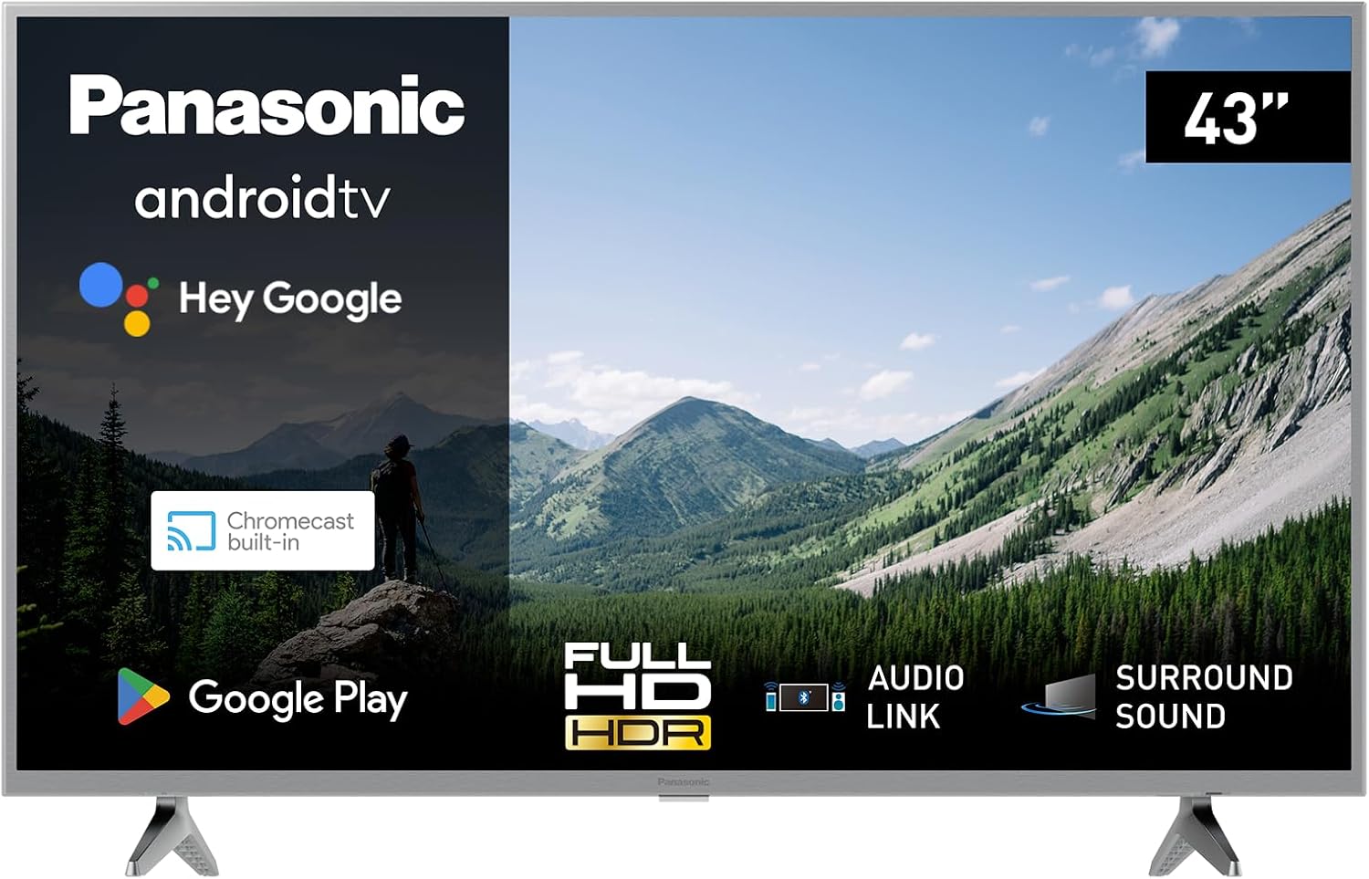 Panasonic TX-43MSW504S, 43 Zoll Full HD LED Smart 2023 TV, Android TV, Surround Sound, Google Assistant, Chromecast, Bright Panel, HD Color Engine, Silber Silber 43 Zoll | قیمت یورویی 549.99€
