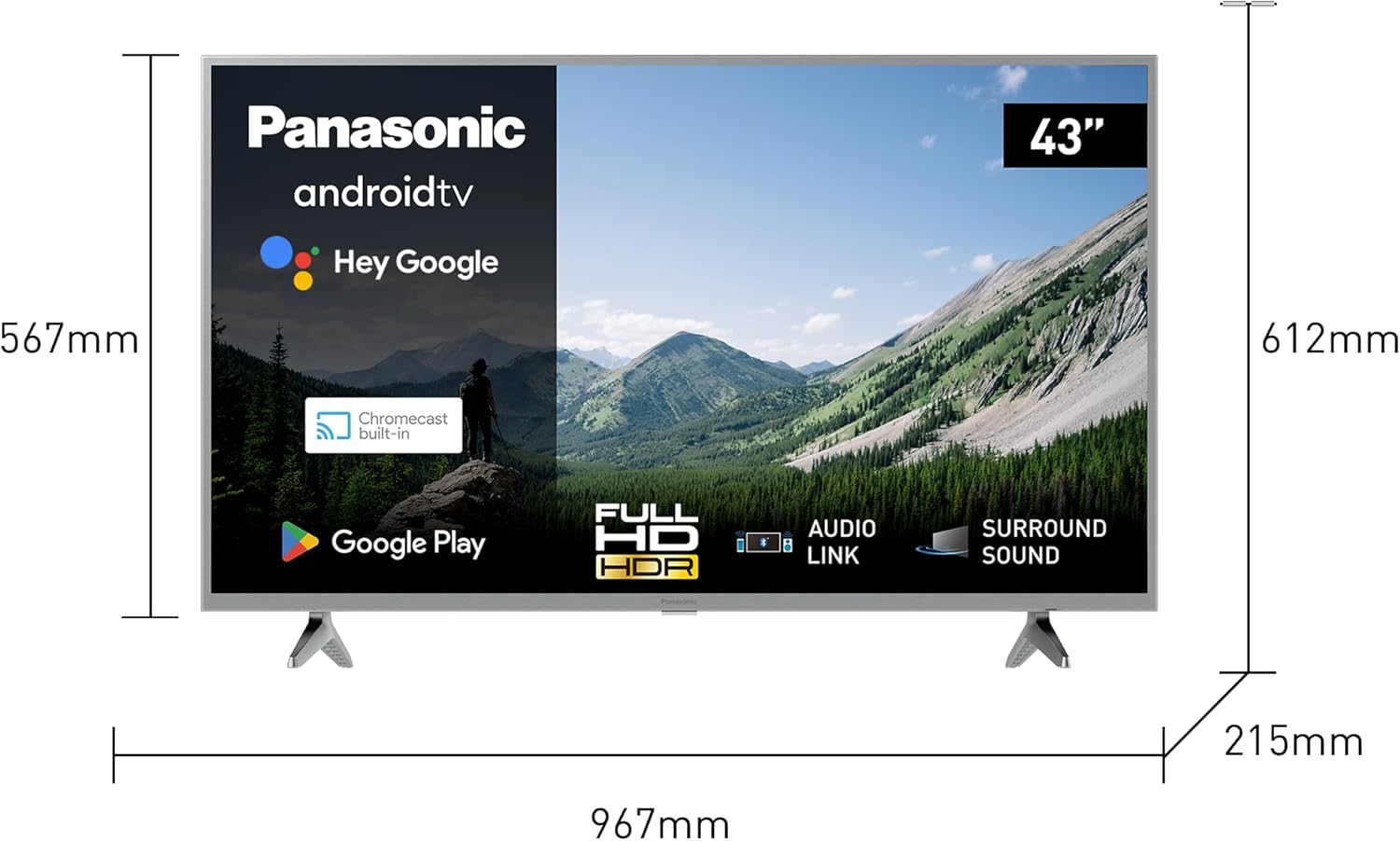 ANDROID TV: Mit diesem Panasonic TV und integriertem Android TV erhalten Sie Zugriff auf all Ihre Lieblingsfilme, -Shows, -Apps und -Spiele von Disney+, Netflix, Amazon Prime, YouTube und Google Play. BRIGHT PANEL: Die Bright Panel Bildschirmtechnologie bietet gestochen scharfe, farbenfrohe Bilder und spektakuläre Kontraste, sodass jede Szene selbst an den hellsten Tagen fantastisch aussieht. HD COLOR ENGINE: Der HD Color Engine Bildverarbeitungschip verbessert dunkle und helle Bereiche, um lebensechte Farben zu liefern, sodass Sie das Gefühl haben, direkt vor Ort zu sein. KINOREIFER SURROUND SOUND: Hochwertige, integrierte Lautsprecher und Audioverarbeitung erzeugen erstaunliche Klarheit, Fülle und Tiefe, um eine immersive Klangbühne zu schaffen. GOOGLE ASSISTANT & CHROMECAST: Steuern Sie Ihren FHD TV mit Ihrer Stimme über den integrierten Google Assistant oder streamen Sie Filme, Shows, Apps und Spiele von Ihrem Handy, Tablet oder Laptop über Chromecast. FILMMAKER MODE: Filmmaker Mode wurde mit den weltweit führenden Regisseuren entwickelt und stellt sicher, dass Farbe, Kontrast, Seitenverhältnis und Bildrate genau so angezeigt werden, wie es sich der Regisseur vorgestellt hat. | قیمت یورویی : 549.99€