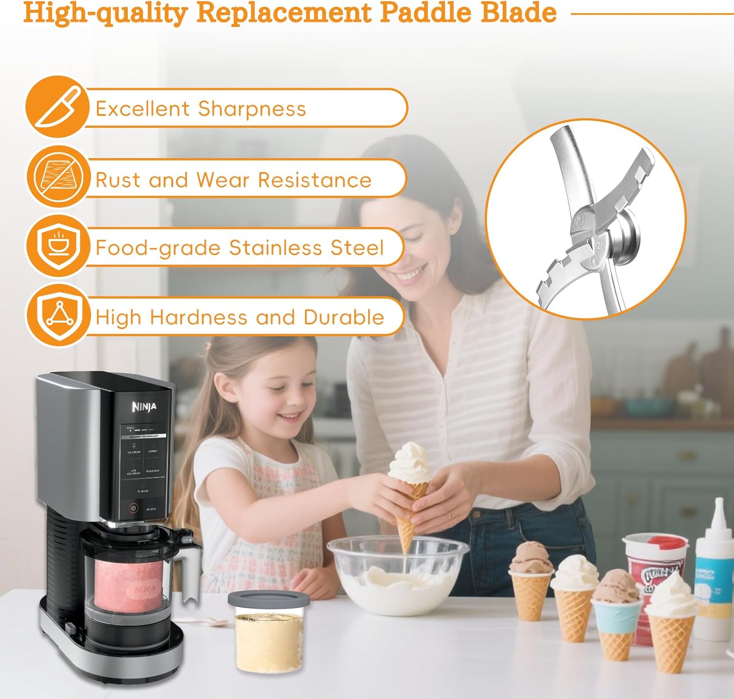 تیغه پارویی جایگزین ساخته شده از فولاد ضد زنگ، سازگار با سری Ninja Creami NC300، تیغه جایگزین برای Ninja Creami Blade برای NC299AMZ / NC301 / CN305A / CN301CO