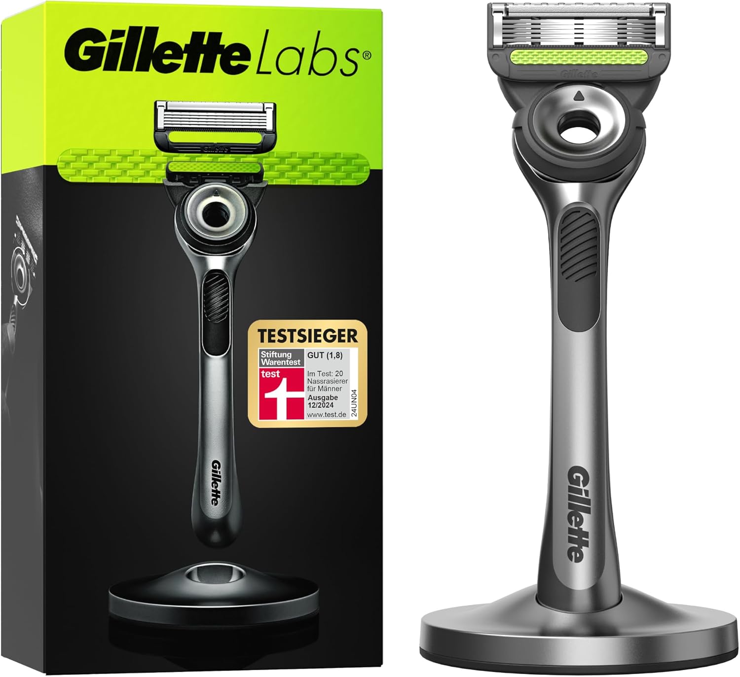 Gillette Labs Nassrasierer Herren, TESTSIEGER VON GILLETTE BEI STIFTUNG WARENTEST, Rasierer mit Reinigungs-Element + 1 Ersatzklinge, Premium-Magnetdock Rasierer + 1 Klinge NEU | قیمت یورویی 19.95€
