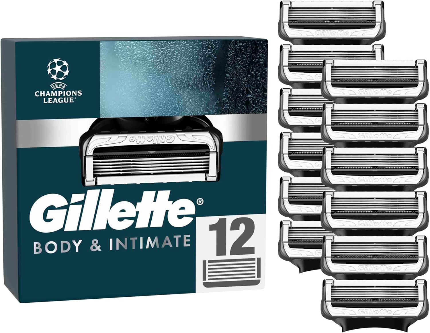 Gillette Body & Intimate Rasierklingen — 12 ORIGINAL Ersatzklingen für Nassrasierer, Klingen für Herren mit Verbesserten Gleitstreifen für eine Sanfte und Einfache Anwendung — Dermatologisch Getestet | قیمت یورویی 52.09€