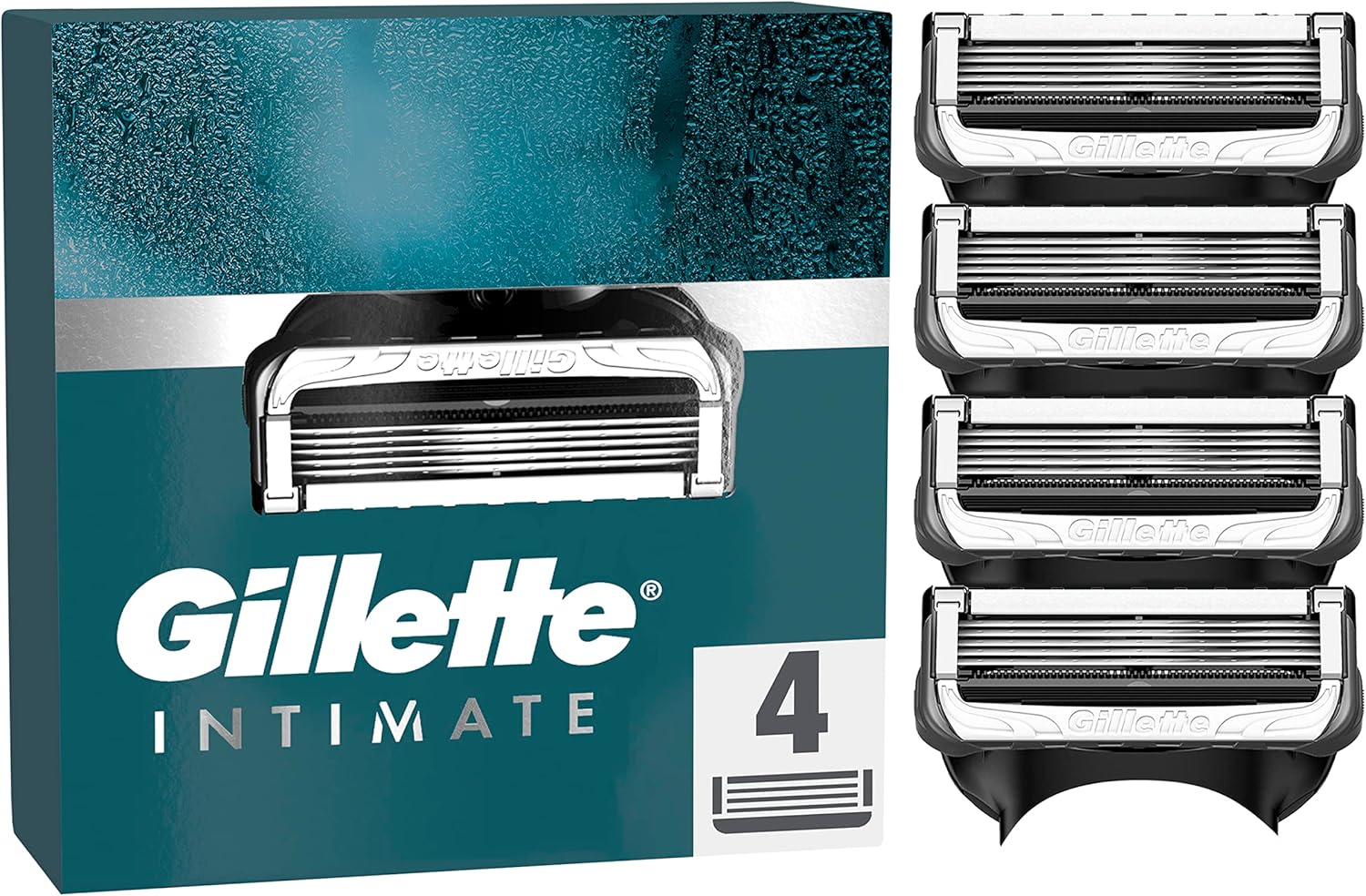 Gillette Intimate Rasierklingen für den Intimbereich, 4 Intimrasierer Ersatzklingen für Nassrasierer mit Gleitstreifen für eine sanfte Anwendung, dermatologisch getestete Klingen für Rasierer Schwarz 1 stück (4er Pack) | قیمت یورویی 19.79€