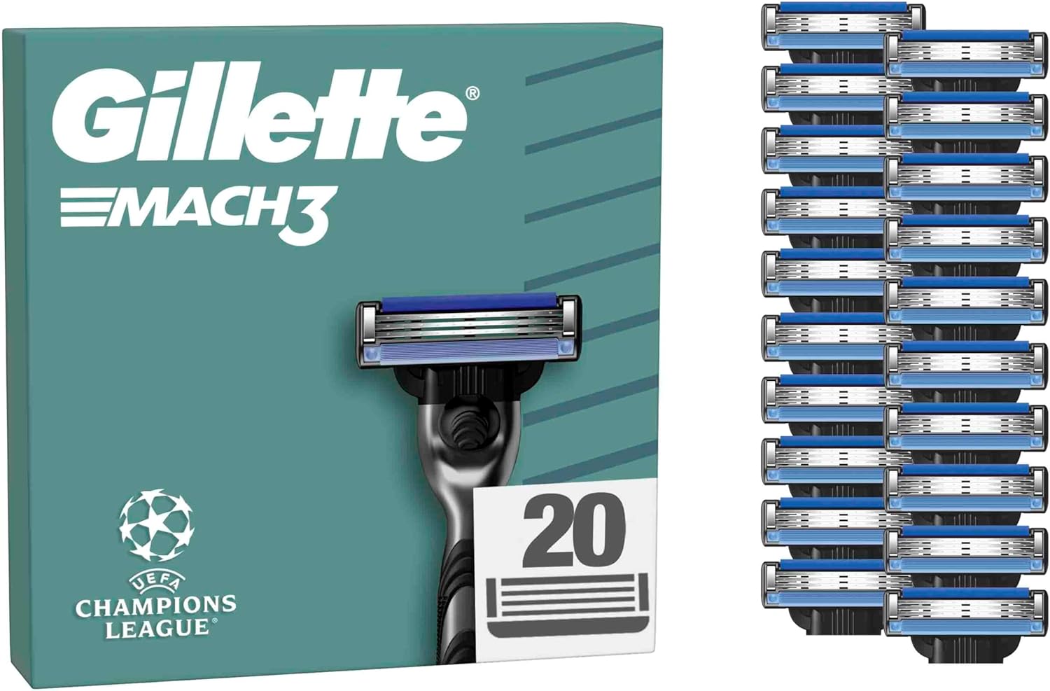 Gillette Mach3 Rasierklingen für Männer, 20 Original Gillette Ersatzklingen, Klingen für Herren mit Gleitstreifen für ein sanftes Gleiten und Klingenbeschichtung 20 Klingen | قیمت یورویی 40.4€