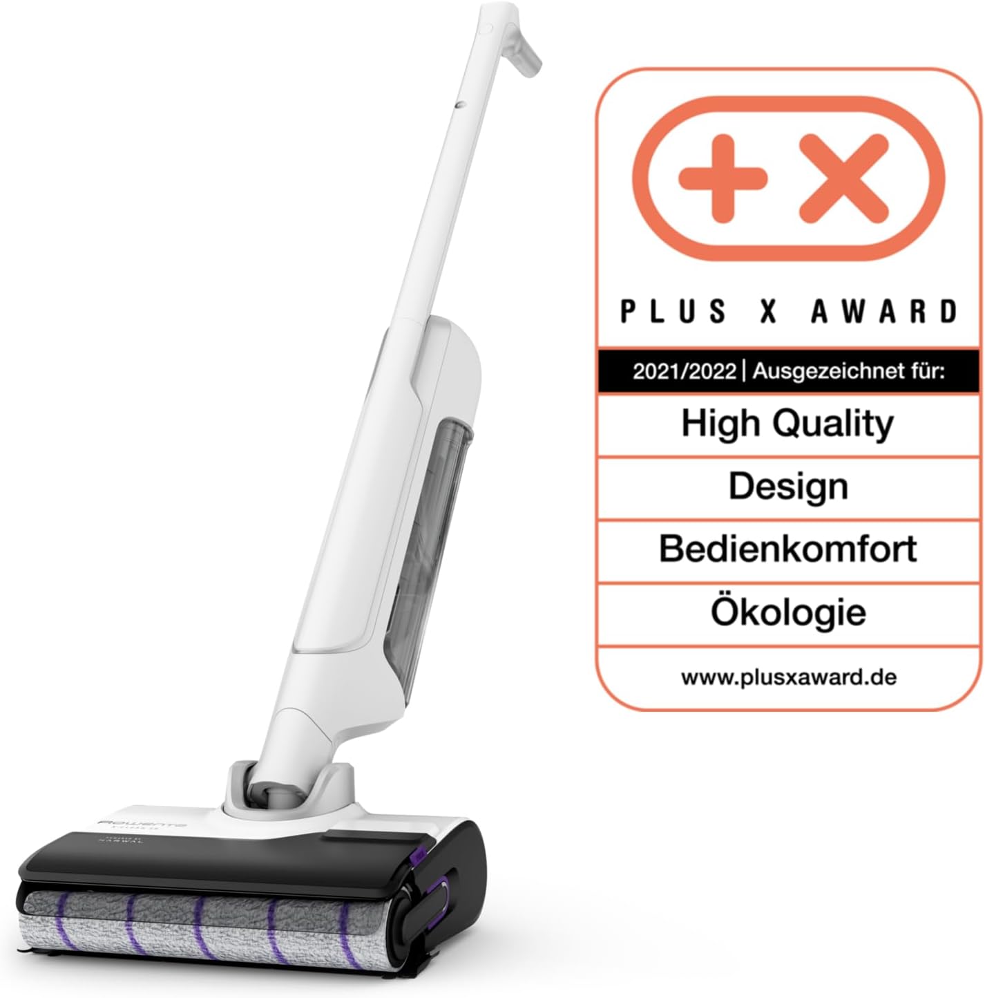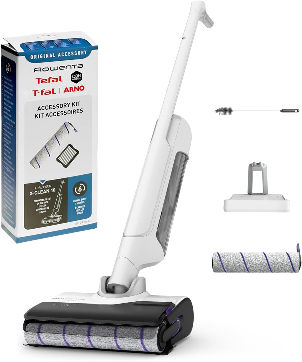 جاروبرقی بیسیم و مرطوب Rowenta X-Clean 10 GZ7540WO + مجموعه لوازم جانبی (غلتک و فیلتر)، تمیزکننده و خشککننده خودکار، 60 دقیقه کارکرد، سفید