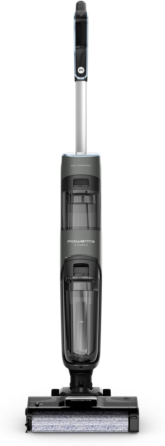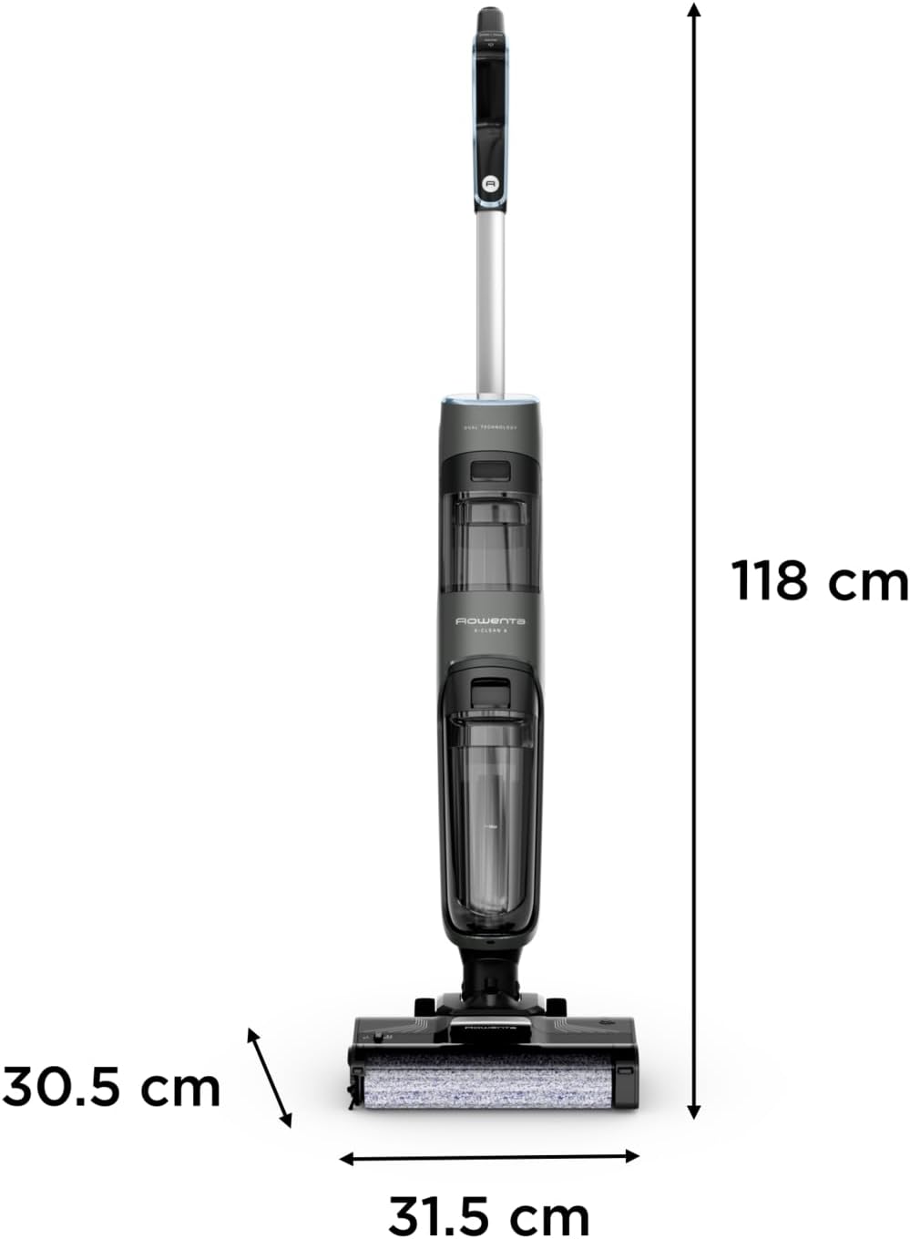 2-IN-1-REINIGUNG: Ein kabelloser Nass- und Trockenstaubsauger, der zeitsparendes 2-in-1-Saugen und Wischen in einem einzigen Durchgang ermöglicht und so perfekte Ergebnisse auf allen Arten von Hartböden (Hartholz, Marmor, Laminat und Fliesen) erzielt INTELLIGENTE SCHMUTZERKENNUNG: Automatische Schmutzerkennung mit Farbindikatoren auf einem LED-Bildschirm - rot für schmutzig und blau für sauber - und automatische Anpassung der Rollendrehzahl/des Wasserdurchflusses für perfekte Ergebnisse EXTRA-LANGE LAUFZEIT: Kabellose Reinigung mit einer Laufzeit von bis zu 50 Minuten für eine Fläche von bis zu 350 m²* (*abhängig von der Wohnungseinrichtung) MÜHELOSES STAUBSAUGEN: Ein ultraleichtes Design mit einem selbstfahrenden Rollensystem für eine Reinigung, die nur 25% des Aufwands erfordert, sowie eine ausgefeilte Ergonomie und ein gut durchdachtes modernes Design LIEFERUMFANG: Rowenta X-Clean 4 kabelloser Nass- und Trockenstaubsauger, zusätzliche weiche Reinigungsrolle, Seitenbürste, Trocken- und Anti-Crash-Schaumfilter, Ladegerät, Lade- und Reinigungsstation, Reinigungsbürste | قیمت یورویی : 249€