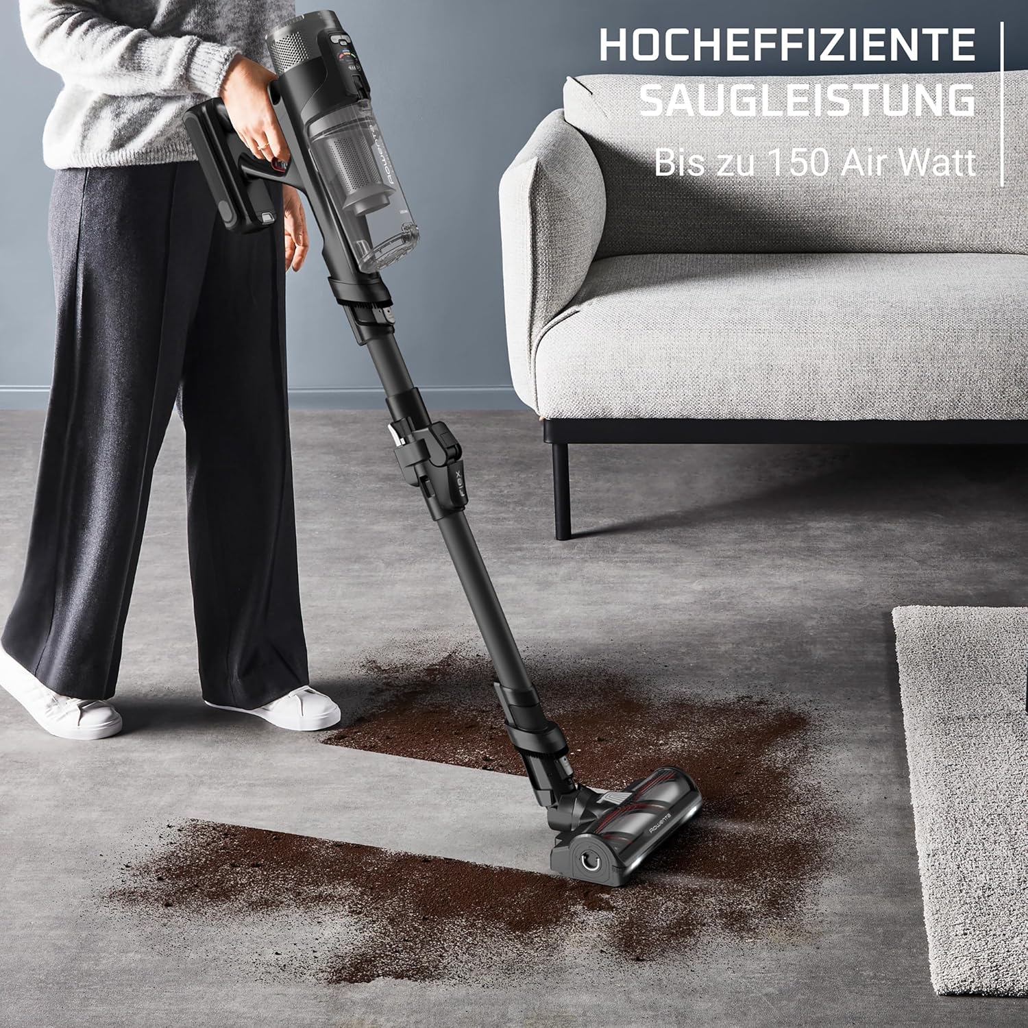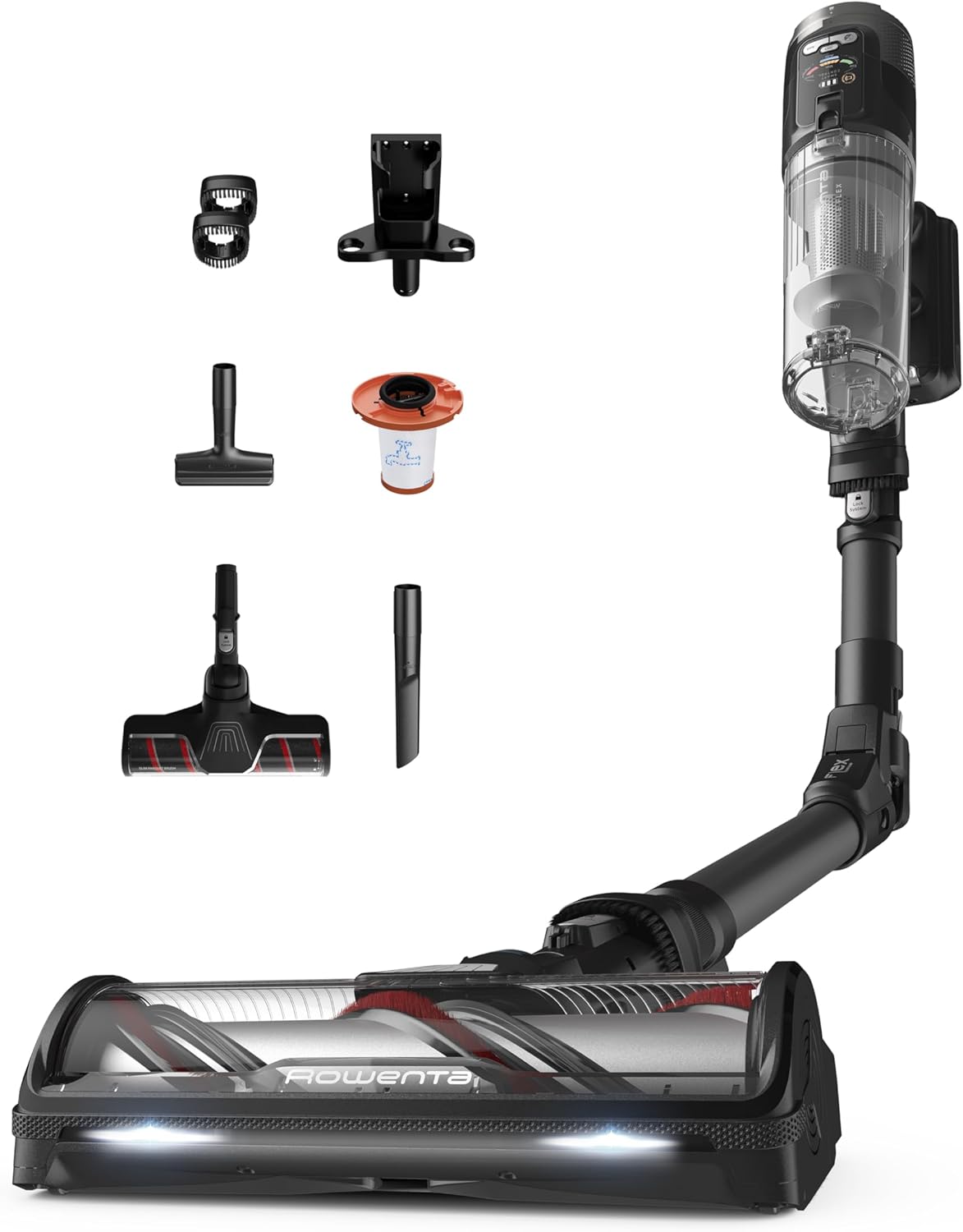 جاروبرقی بیسیم Rowenta X-Force Flex 12.60 Neo، تنها ۱.۶ کیلوگرم به عنوان جاروبرقی دستی، ۱۵۰ وات هوا، ۶۰ دقیقه کارکرد، لوله انعطافپذیر، نمایشگر کنترل دیجیتال، روشنایی LED، مشکی، RH9L55E0