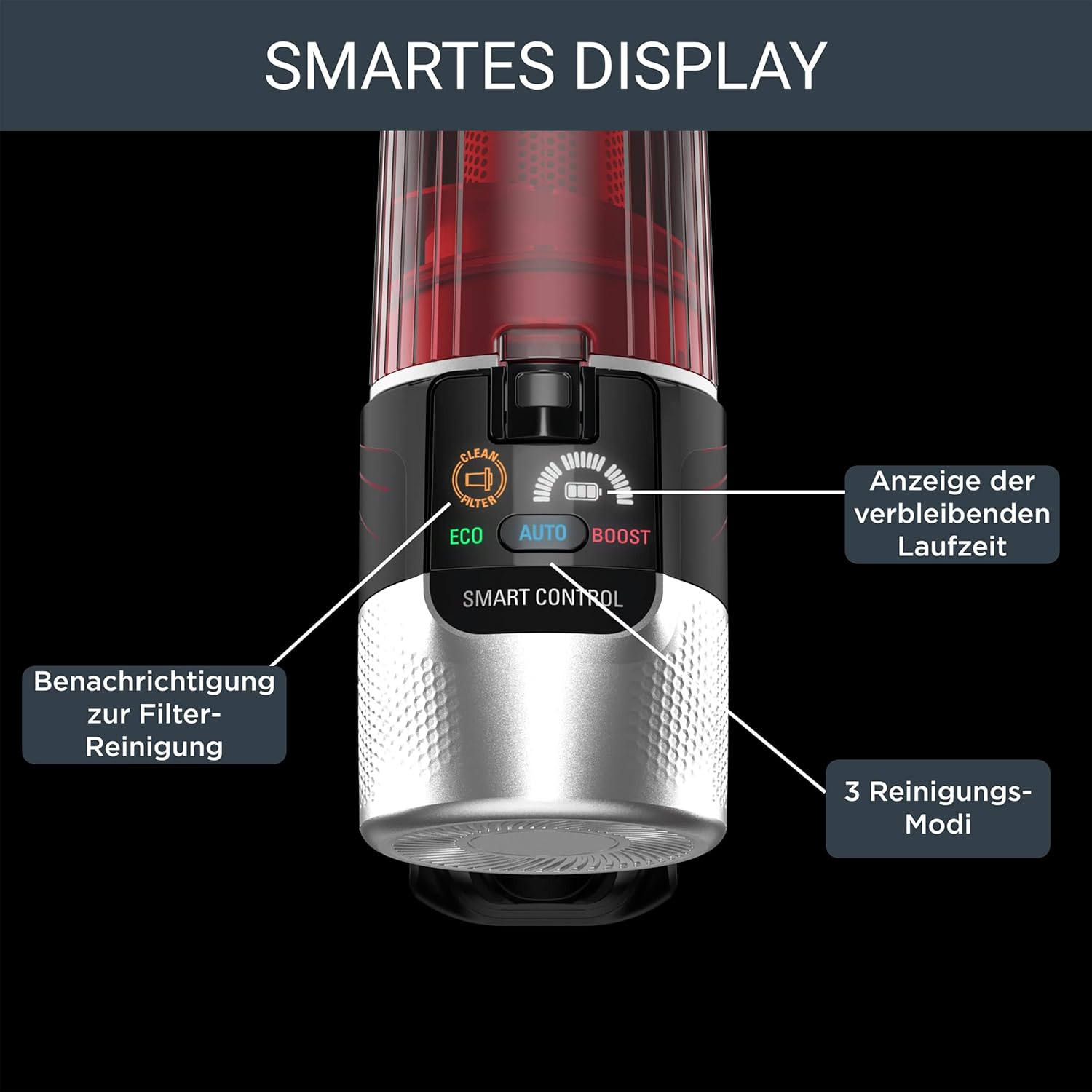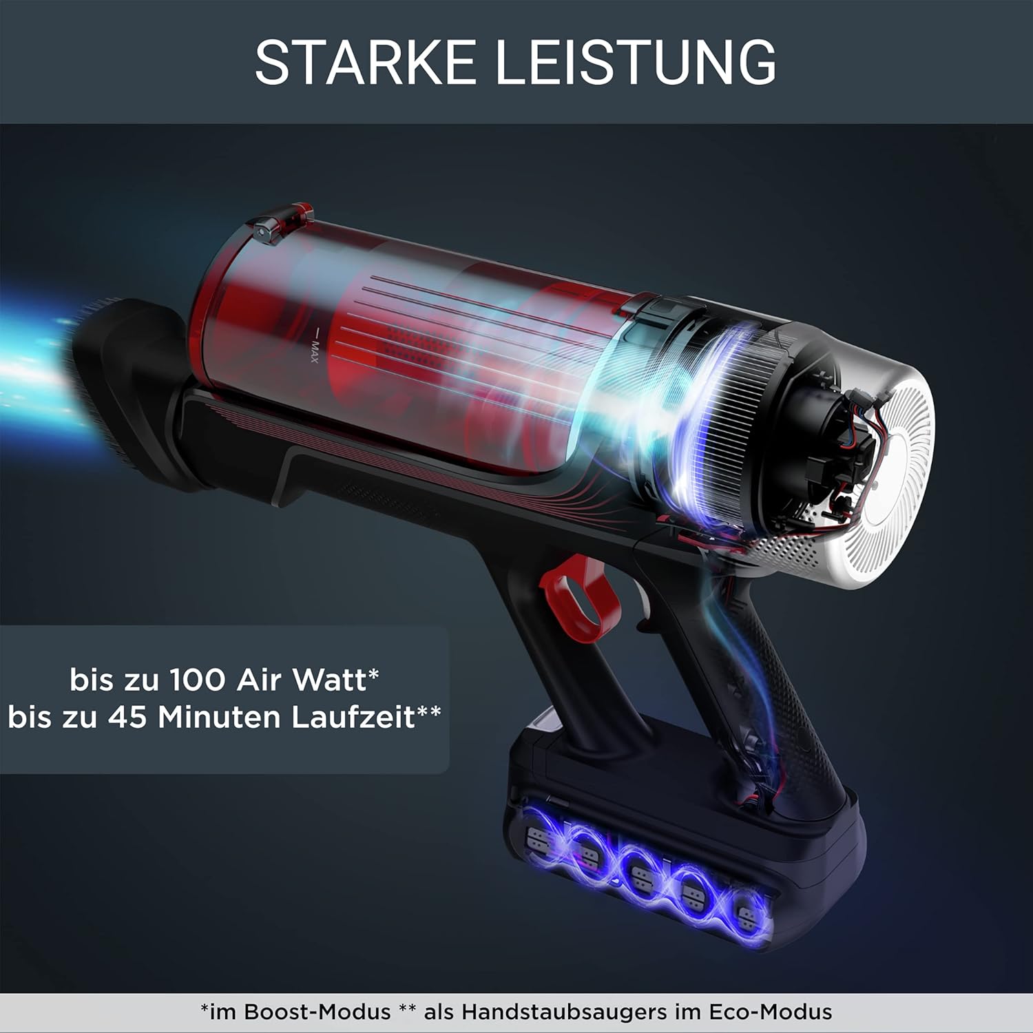 Leistungsstark: Ein Akkustaubsauger mit einer starken konstanten Saugkraft von bis zu 100 Air Watt* für eine langfristig maximale Effizienz (*Bei Nutzung der Boost-Funktion); lange Betriebsdauer: Der herausnehmbare 18,5 V-Akku sorgt für eine Laufzeit für bis zu 45 Minuten**, für eine tiefenwirksame Reinigung mit beeindruckender Autonomie (**bei Nutzung als Handstaubsauger im Eco-Modus) Ultra-leichtes Design: Schlankes und kompaktes Design für ultra-leichtes Reinigen - nur 1,1 kg als Handstaubsauger für den totalen Komfort; Reinigung überall: Durch das Flex-Gelenk reicht der Staubsauger bis tief unter die Möbel für eine vollständige Reinigung, die motorisierte LED-Düse sorgt für die Staubaufnahme in schwach beleuchteten Bereichen Smarte & optimierte Reinigung: Ein kabelloser Staubsauger mit Spitzentechnologie und automatischer Anpasssung der Saugkraft je nach Bodenart; Effizienz in Reichweite: Smart Control Display zeigt die verbleibende Laufzeit und den Alarm zur Filterreinigung an und ermöglicht das Einstellen der Programme Extreme Hygiene und Filterung: Ein erweitertes System, das 99,9% Feinstaub, Allergene und Staubmilben auffängt und für eine lange Luft/Staub-Trennung sorgt; hohes Fassungsvermögen: Der Staubbehälter mit einem hohen Fassungsvermögen für große Reinigungsflächen muss weniger geleert werden, ist leicht zu entnehmen und zu 100% waschbar Tierhaarzubehör: Stressfreies Reinigen überall, nicht nur Böden, mit der vielseitigen Sauglösung, die auch die hinterste Ecke erreicht - ideal für Haustierbesitzer, dank einer speziellen Animal Turbo-Bürste; Lieferumfang: Kabelloser Staubsauger, Ladestation, Fugendüse, Polsterbürste, Animal Turbo-Bürste, Ladevorrichtung und Schnellstart-Anleitung | قیمت یورویی : 211.36€