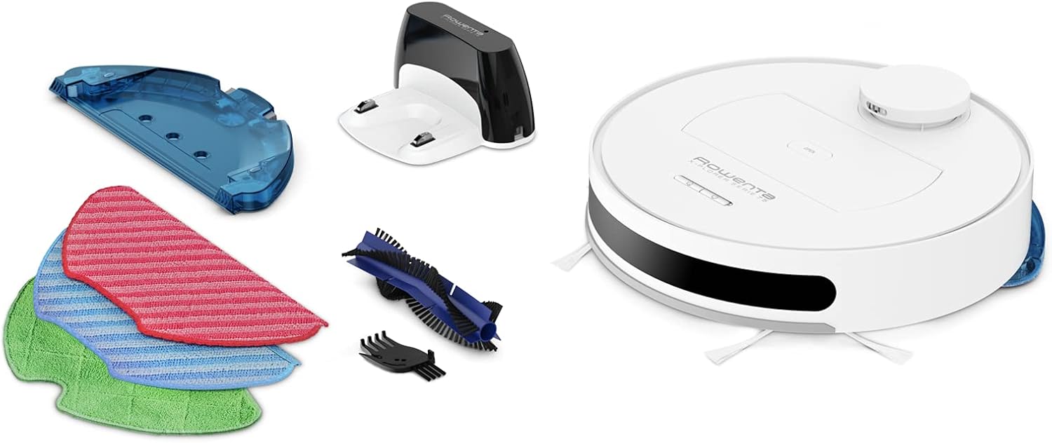 جاروبرقی رباتیک Rowenta سری X-Plorer 75 RR7687 | ناوبری با دقت بالا | کیت آلرژی | مدل مراقبت از حیوانات | تمیز کردن 4 کاره | سازگاری با تلفن هوشمند و دستیار صوتی | 65 دسیبل | ناوبری لیزری با دقت بالا 150 دقیقه