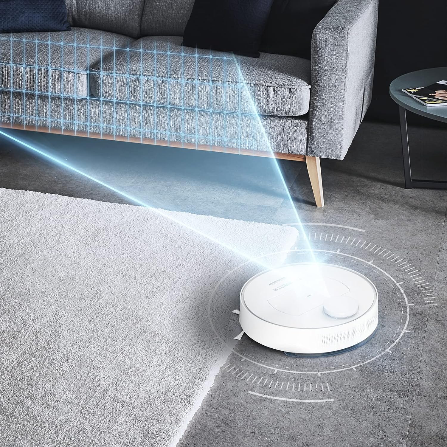 ULTRAPRÄZISE NAVIGATION: ein Saugroboter mit verbesserter Technologie für ultrapräzise Lasernavigation, intelligente punktuelle Reinigung und permanente Kartierung für ein nahtloses Reinigungserlebnis 4-IN-1-REINIGUNGSFUNKTION: zwei seitliche Düsen für Ecken und schwer zugängliche Stellen, eine Turbodüse für Haare und Flusen, ein BLDC-Motor für zuverlässiges Saugen und das Aqua Power System für das Wischen von Oberflächen MULTIROOM-VERWALTUNG: legen Sie abhängig von Ihren Bedürfnissen und dank der Multiroom-Reinigung mit anpassbaren Einstellungen spezifische Reinigungsmuster für bestimmte Räume fest und speichern Sie bis zu vier Karten für die Reinigung mehrerer Etagen NO-GO-ZONEN: Richten Sie "No-Go-Zonen" ein, um bestimmte Bereiche für eine mühelose, individuelle Reinigung zu sperren UMFASSENDE ALLERGIE- UND TIERPFLEGE: ideal für Haustierbesitzer - mit der Animal Turbo Düse und dem Animal Scrub Mopp - und für Allergiker - mit dem HEPA-Filter und dem Allergy Electrostatic Mopp EFFIZIENZ AUF ALLEN BÖDEN: die smarte Auto-Boost-Funktion passt die Leistungsstufe automatisch an, um Teppiche oder Vorleger gründlich zu reinigen | قیمت یورویی : 298.16€