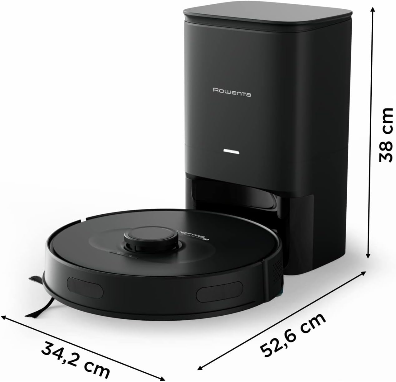 جاروبرقی رباتیک Rowenta X-Plorer سری 75+، 4 کاره با قابلیت تی کشیدن، ایستگاه جاروبرقی، سیستم ناوبری لیزری، 3 حالت تمیز کردن، 120 دقیقه زمان اجرا، 4 ساعت زمان شارژ، مخزن گرد و غبار 0.26 لیتری، مشکی، RR8585 با ایستگاه جاروبرقی مشکی