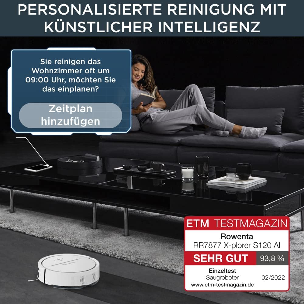 Rowenta Saugroboter X-PLORER Serie 120 AI RR7877 | Lernfähige Laser-Navigation | Ultra-Präzises Automatisches Reinigen | Hohe Datensicherheit | Steuerung Per App | 4 In 1 Reinigung | 120m² | Weiß | قیمت یورویی 249.99€