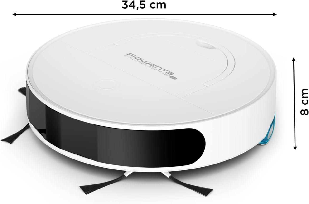 Rowenta X-Plorer Serie 130 AI, 4-in-1 Wisch- & Saugroboter flach mit nur 8 cm, Laser + Kamera-Navigationssystem, 4 Reinigungsmodi, 120 Min. Laufzeit, 3 Std. Ladezeit, 0,7 L Staubbehälter, RR9067 Weiß | قیمت یورویی 279.42€