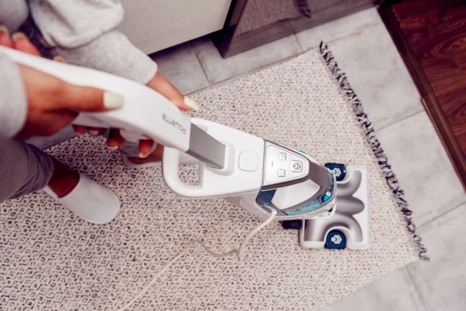 Rowenta Clean & Steam Multi Dampfstaubsauger, gleichzeitig saugen und wischen, abnehmbares Handteil mit vielen Aufsätzen, 1700 Watt, nur 30 Sekunden Aufheizzeit, Weiß, RY8544 لینک آمازون : https://www.amazon.de/dp/B07N2W672P?th=1&psc=1 بخارشوی دستی قابل جدا شدن برای از بین بردن لکههای سرسخت حتی در مناطق صعب العبور از بین برنده ۹۹.۹٪ میکروبها و باکتریها فقط با استفاده از آب لولهکشی و بدون مواد شیمیایی یا شوینده دو سطح بخار (اقتصادی و حداکثر) مناسب برای سطوح و مقاصد مختلف جاروبرقی با فناوری پیشرفته سیکلون بدون کیسه و جداسازی بالای گرد و غبار از هوا طیف گستردهای از لوازم جانبی: اتصالات مختلف، نازلهای متنوع، متمرکزکننده بخار برای آلودگیهای سرسخت و شیشهپاککن عملکرد ایمن و آسان: بخار را به دلخواه با استفاده از دکمه بخار فعال کنید، فقط 30 ثانیه زمان گرم شدن