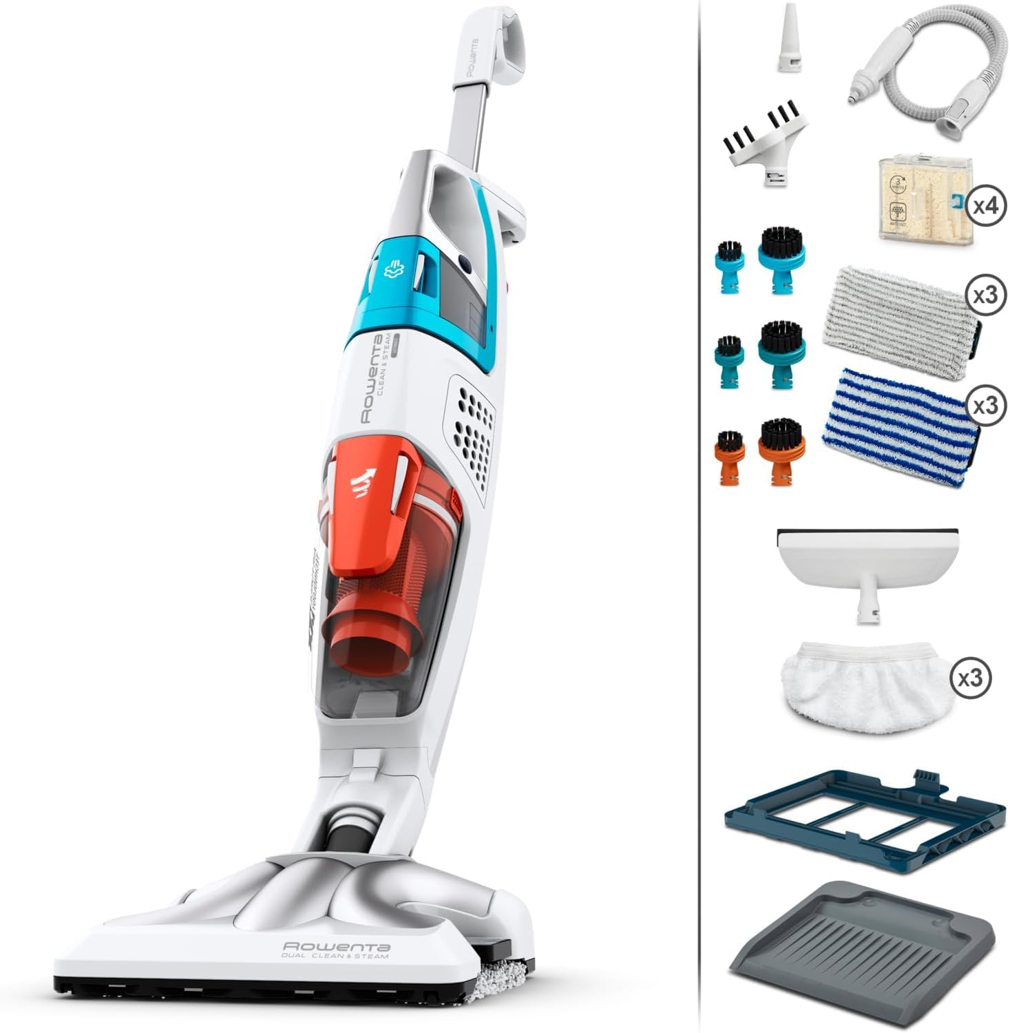 جاروبرقی چند بخارشوی Rowenta Clean & Steam، جاروبرقی و تیکشی همزمان، گوشی قابل جدا شدن با چندین اتصال، ۱۷۰۰ وات، تنها در ۳۰ ثانیه گرم میشود، سفید، RY۸۵۴۴