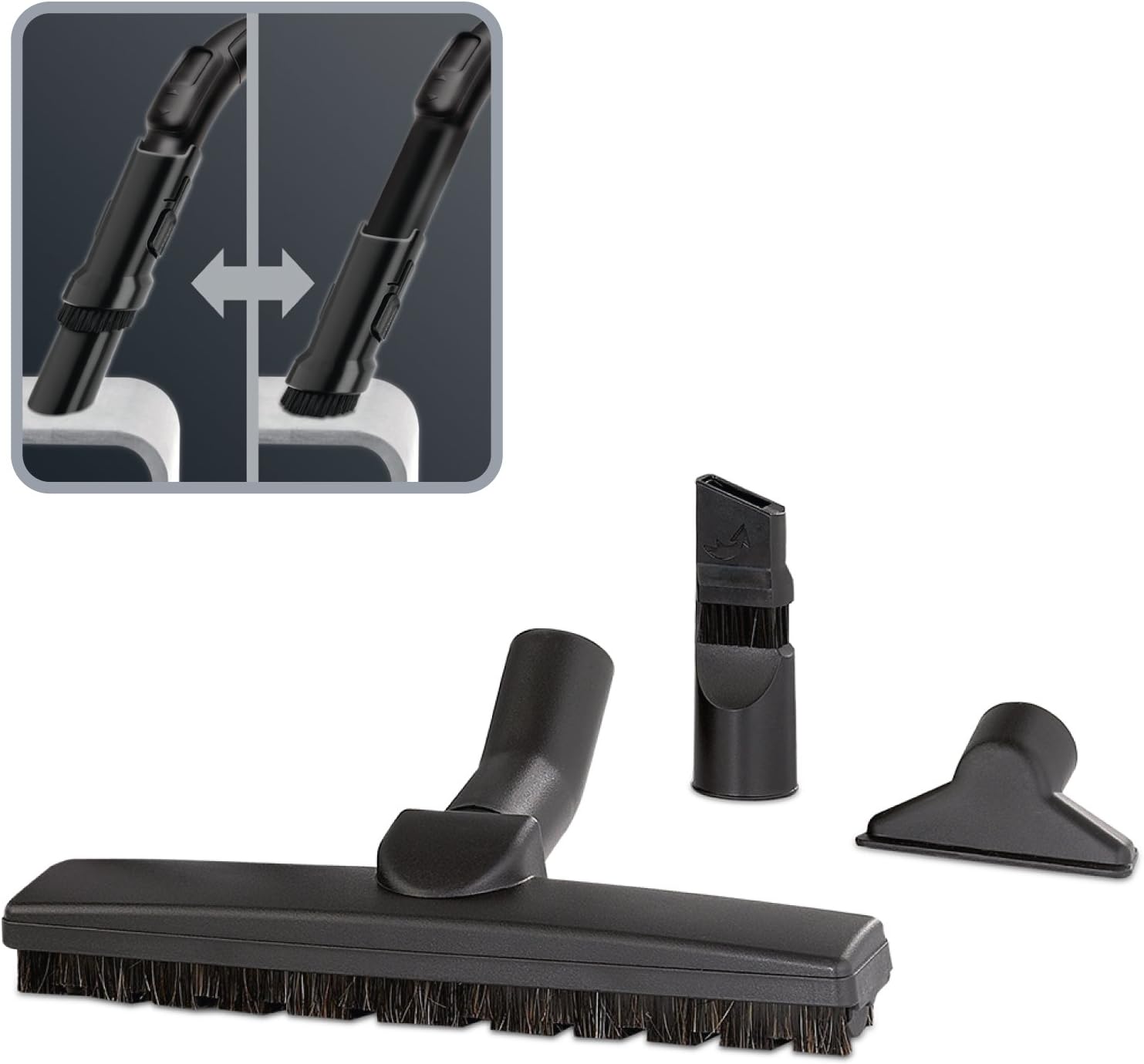 حداکثر عملکرد نظافت: جاروبرقی کیسهدار با قدرت مکش بالا برای نتایج عالی در سطوح سخت. مؤثر: فیلتر بسیار کارآمد که از شیوع باکتریها جلوگیری میکند. مصرف انرژی پایین: به لطف موتور کم وات (750 وات) و قدرت تمیزکنندگی قابل مقایسه با 2000 وات. طراحی فوقالعاده جمعوجور: با وجود حجم ۳ لیتر، ابعاد جمعوجور برای نگهداری در کمد دیواری، دارای دسته ارگونومیک برای حملونقل آسان لوازم جانبی کاربردی: نازل دو کاره مخصوص تمیز کردن درزها و شکافها برای تمیز کردن کامل نواحی صعبالعبور کیسه Hygiene+ امکان تعویض آسان کیسه را بدون ایجاد گرد و غبار برای بهداشت بیشتر فراهم میکند. فیلتر دائمی با فناوری فیلتراسیون بالا هرگز نیازی به تعویض ندارد (هنگام استفاده از کیسههای بهداشتی Rowenta)