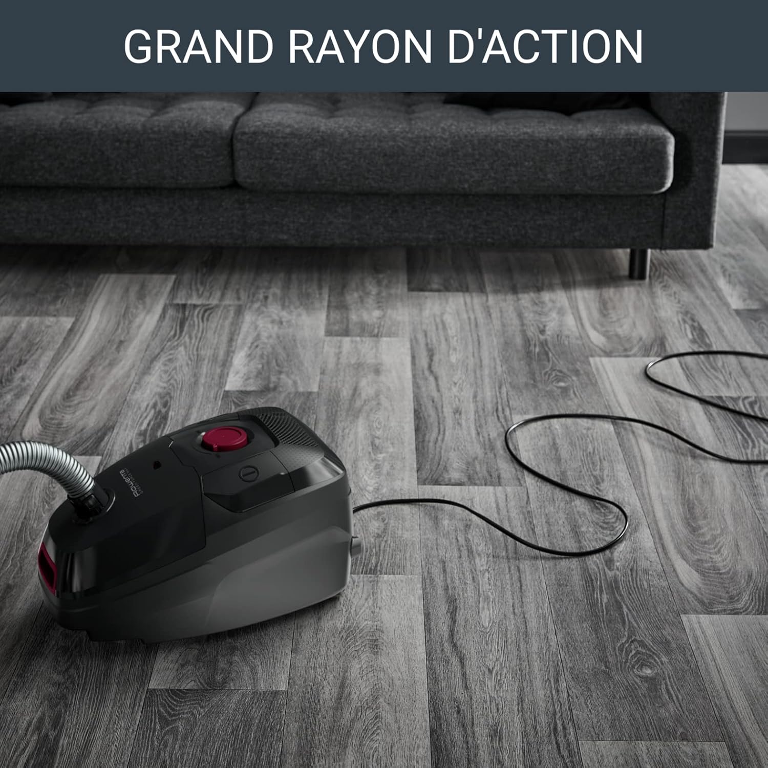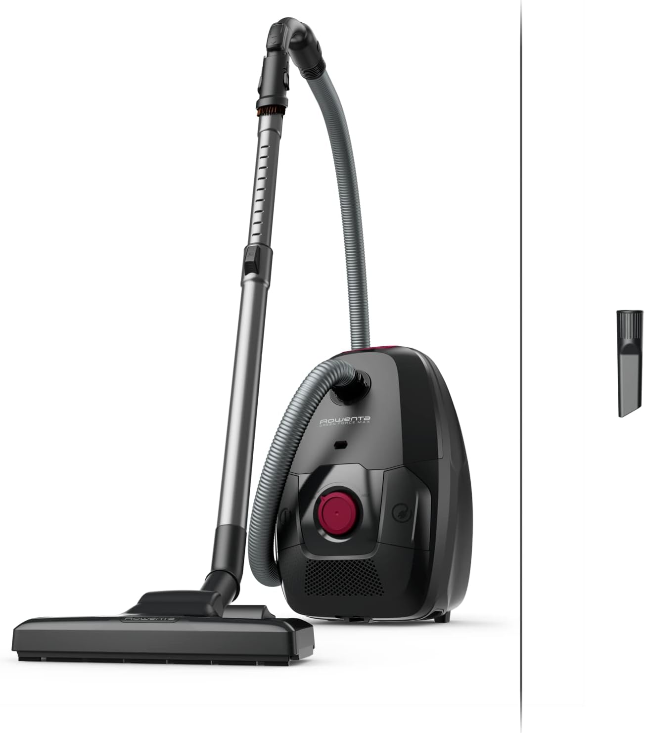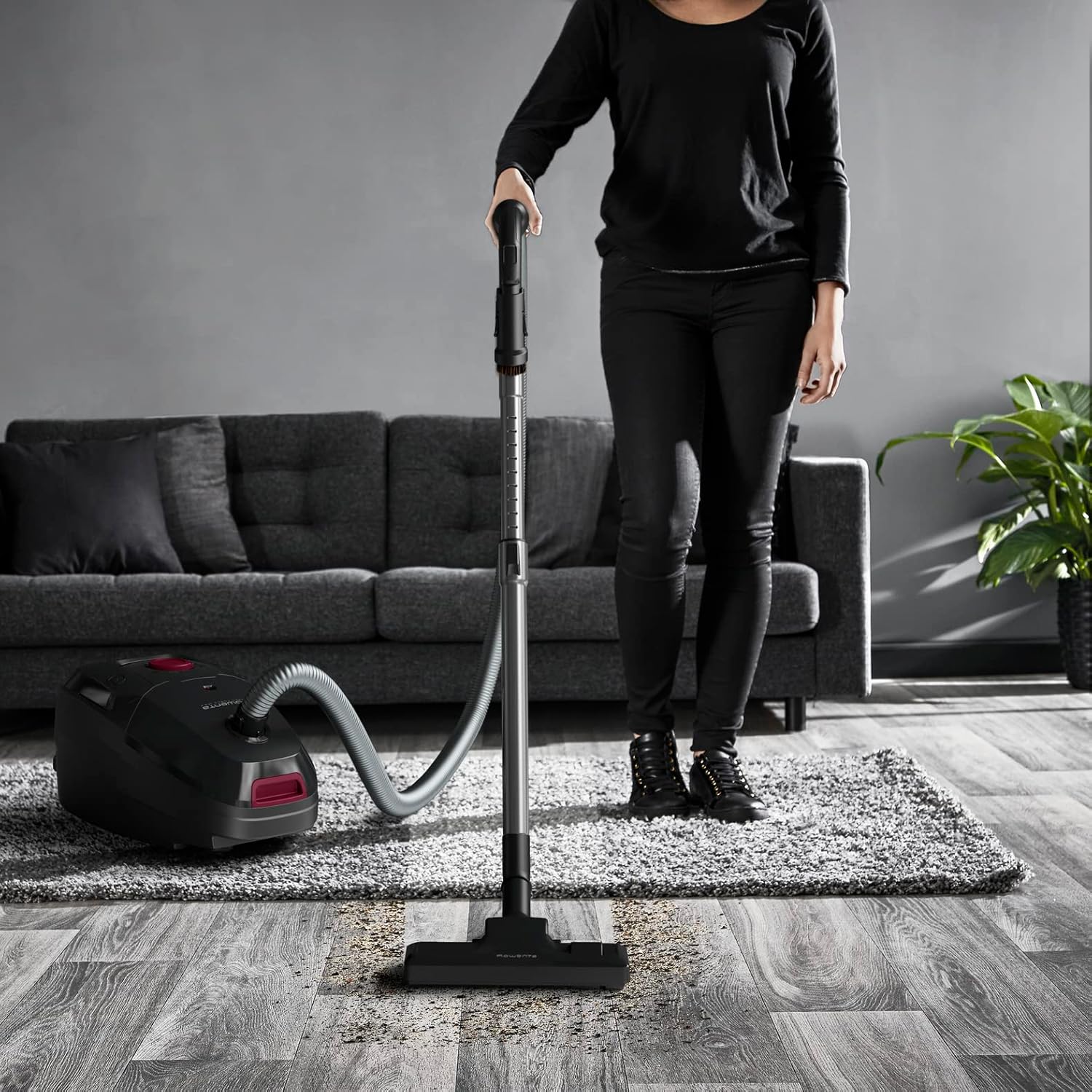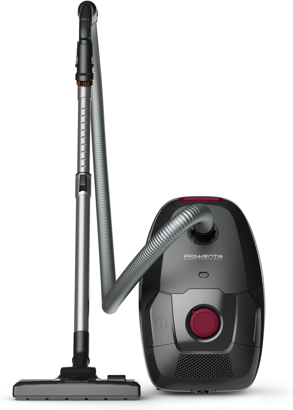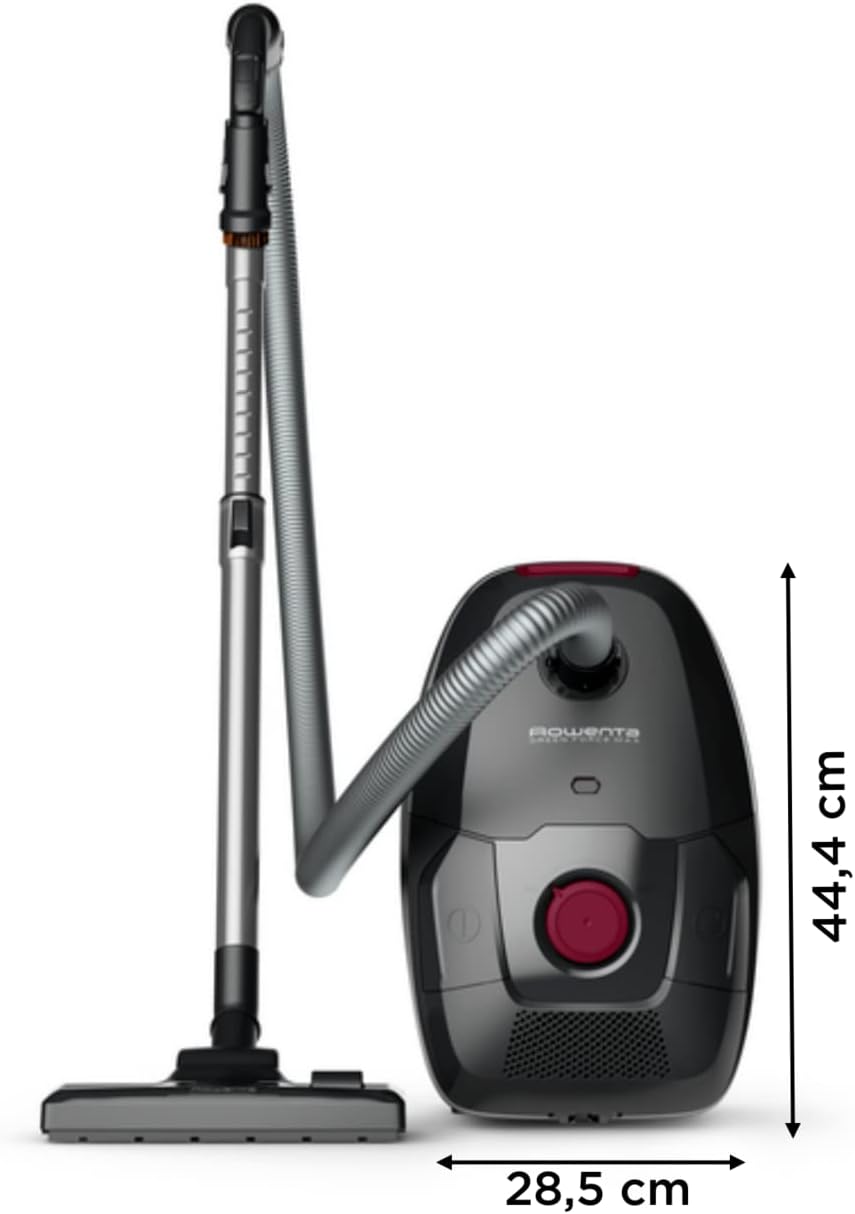جاروبرقی کیسه‌دار Rowenta Green Force Max، حداکثر ۹۰۰ وات، کیسه گرد و غبار ۴.۵ لیتری، فیلتراسیون HEPA ۹۹.۹۸٪، شعاع تمیز کردن ۱۲ متر، طراحی جمع و جور، شامل ابزار تمیز کردن درزها، مشکی، RO4933 RO4933_Standard