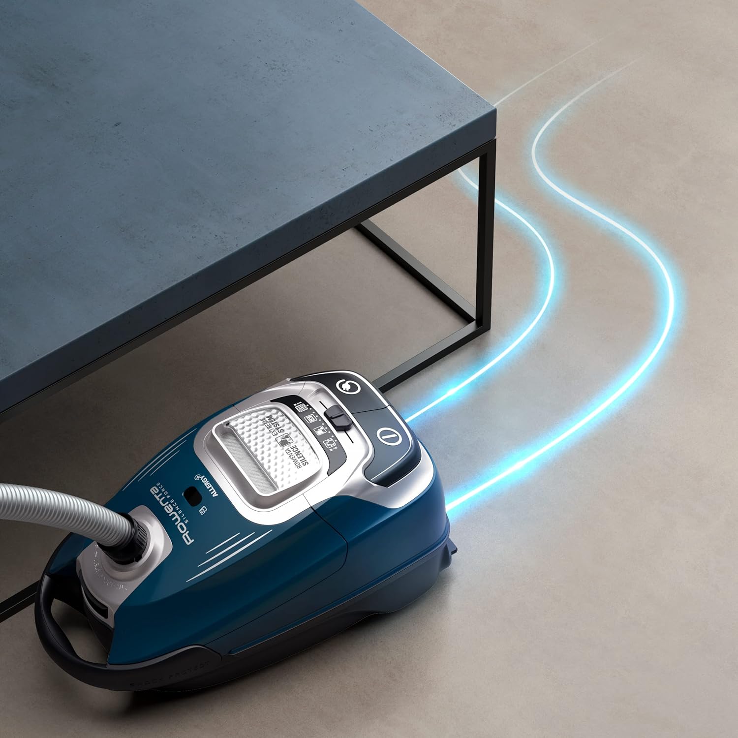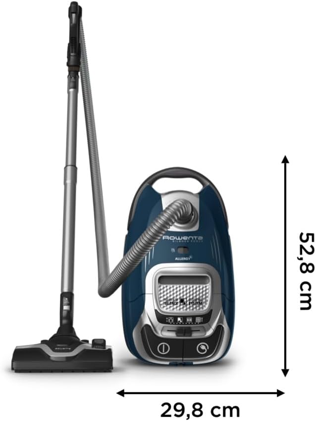 جاروبرقی کیسهدار روونتا آلمان Rowenta Silence Force Effitech، وات 400، فوقالعاده بیصدا با صدای ۵۷ دسیبل (A)، موتور Effitech کممصرف، فیلتر دائمی، نشانگر پر شدن کیسه گرد و غبار، آبی تیره، RO7451 RO7451_Standard