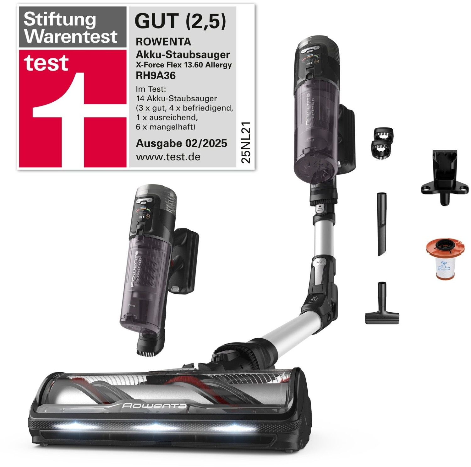 جارو X-Force Flex 13.60 یکی از معدود مدلهاییست که در تست معتبر بنیاد آلمان (02/2025) موفق به کسب امتیاز خوب (2.5) شده است و در رده قیمتی خود بهترین عملکرد را در جمعآوری گرد و غبار و موی حیوانات از روی فرش دارد. طراحی لولای Flex و سری مجهز به چراغ LED باعث میشود هیچ نقطهای از دید شما پنهان نماند. همچنین جارو دستی داخلی، تمیز کردن سطوح مختلف مانند مبلمان و پلهها را سادهتر کرده است.
