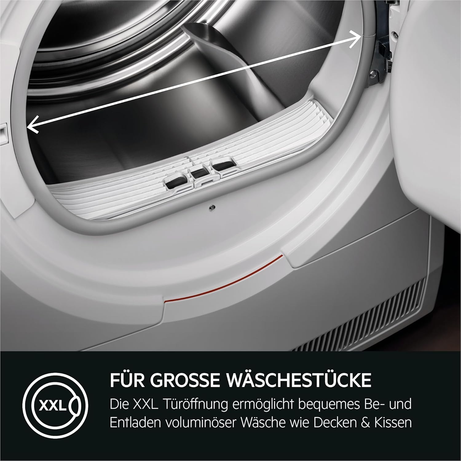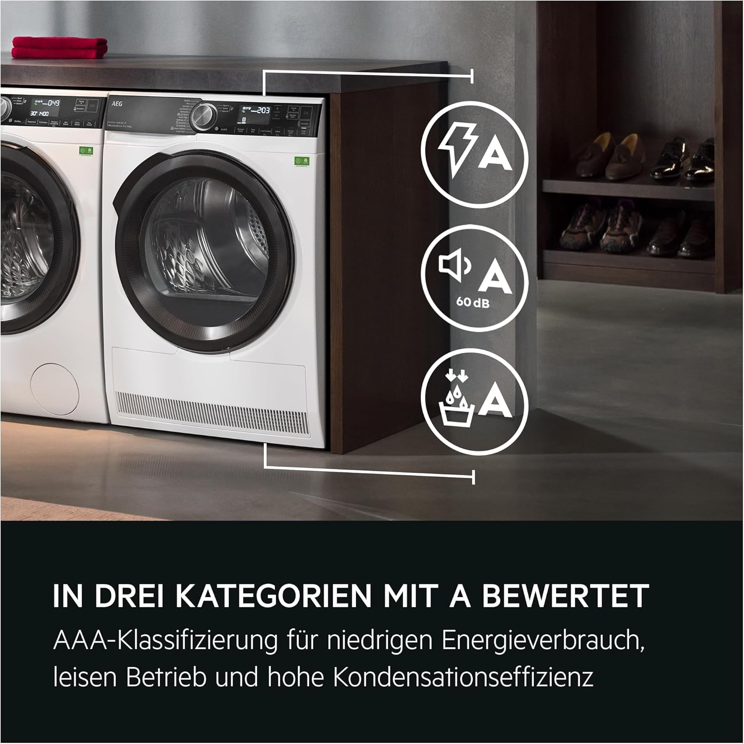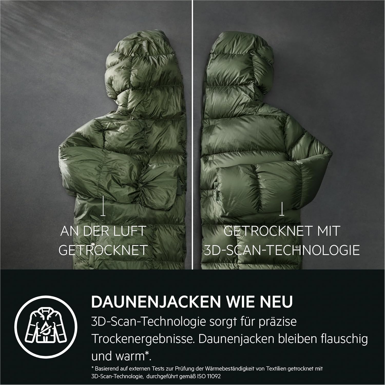 AEG WiFi Wärmepumpentrockner 9 kg mit SmartDry, Serie 9000X AbsoluteCarePlus - Daunentrocknung, 3D-Scan Restfeuchteermittlung, A, Trommelbeleuchtung, Knitterschutz -Weniger Bügelaufwand TR9XW80890 Serie 9000 EEKL A | 9kg | قیمت یورویی 1214.99€