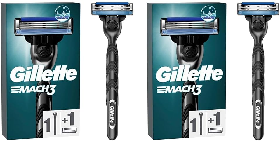 Gillette Mach3 Nassrasierer Herren, Rasierer + 1 Rasierklinge mit 3-fach Klinge, Geschenk für Männer (Packung mit 2) Rasierer + 1 Klinge 1 Stück (2er Pack) | قیمت یورویی 14.4€