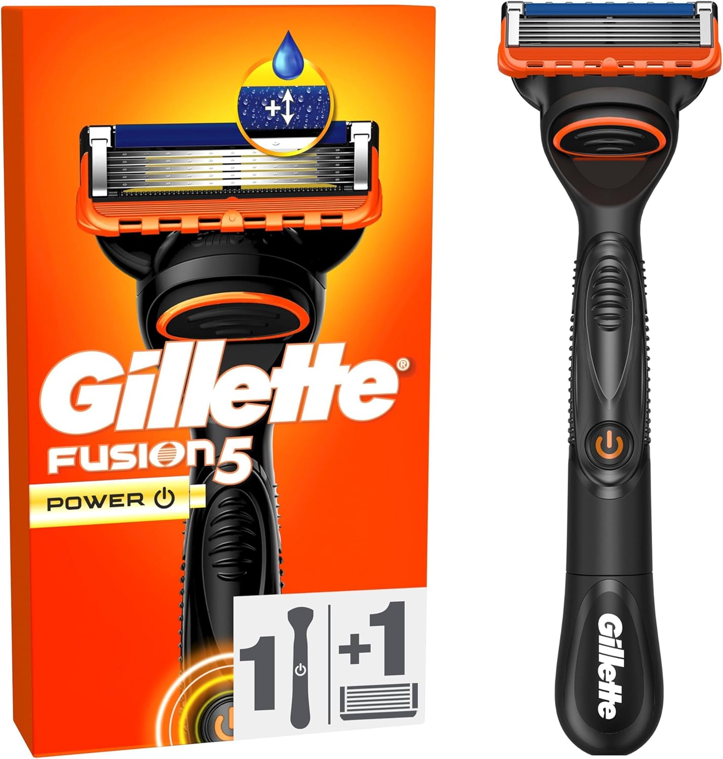 Gillette Fusion5 Power Rasierer für Männer, 1 Gillette Rasierer, 1 Ersatzklingen, Mit einem Gleitstreifen für ein sanftes Gleiten und 5 Klingen für eine gründliche, langanhaltende Rasur Rasierer + 1 Klinge NEU | قیمت یورویی 16.12€