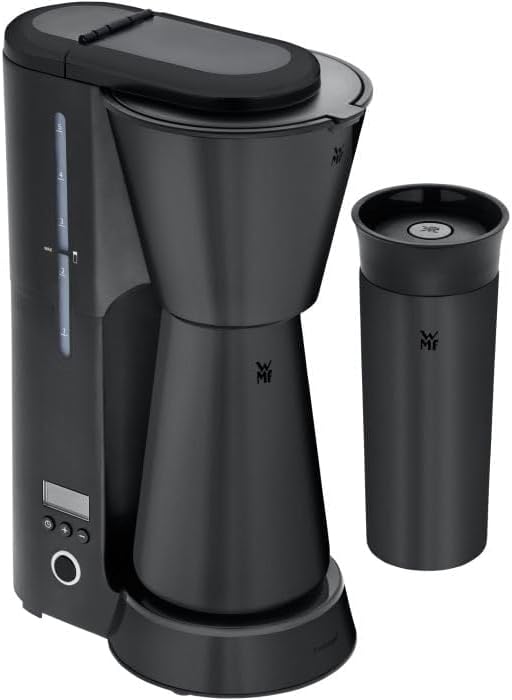 WMF Küchenminis Aroma Filterkaffeemaschine mit Thermoskanne, 870 Watt, Thermobecher to go, kleine Kaffeemaschine to go, Timer, edelstahl schwarz matt | قیمت یورویی 105.97€