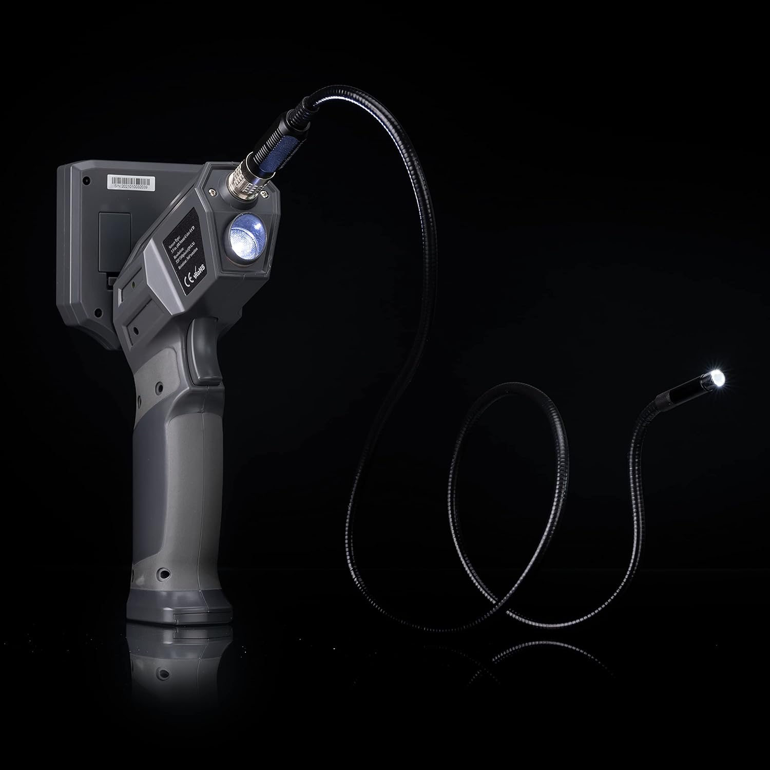Mit der wasserdichten Endoskopkamera mit 6 hellen LEDs machen Sie ganz leicht Fotos und HD-Videos von versteckten Ecken und sichern diese direkt auf einer SD-/TF-Speicherkarte (<32GB, nicht enthalten) Farb-Display, 1 m langer, 8,5 mm starker Schwanenhals mit 6 einstellbaren LEDs, durch separaten Schalter auch als Taschenlampe verwendbar, SD-/TF-Speicherkartensteckplatz (bis zu 32GB) Wasserdicht und staubgeschützt nach IP65, Bildschirm-Auflösung: 320 x 240 Pixel, Foto-Auflösung: 2 MP; Video-Auflösung: 640 x 480 Pixel (40 fps), Videoaufnahme mit Ton, 4-fache Bildvergrößerung Hohe Leuchtdichte und geringer Stromverbrauch, Batterielaufzeit: ca.4-5 Stunden, Anwendungsbereich: professionelle Inspektion schwer zugänglicher Bereiche, Wissenschaftsunterricht, Erkundung im Freien Maße: 360x400x130 mm, Schwanenhals: 1m, Gewicht: 435 g, benötigte Batterien: 4x AA | قیمت یورویی : 148.49€