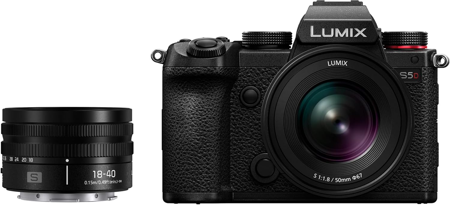 Panasonic DC-S5DWE-K Lumix S5D Full Frame Mirrorless Camera Body, 24.2MP, 4K 60P Recording, Live View Finder, Free Angle Monitor, Wi-Fi, Bluetooth, with S-R1840E 18-40mm & S-S50ME 50mm Lenses, Black S5D (NEU) mit 18-40mm + 50mm Objektiv | قیمت یورویی 1199€