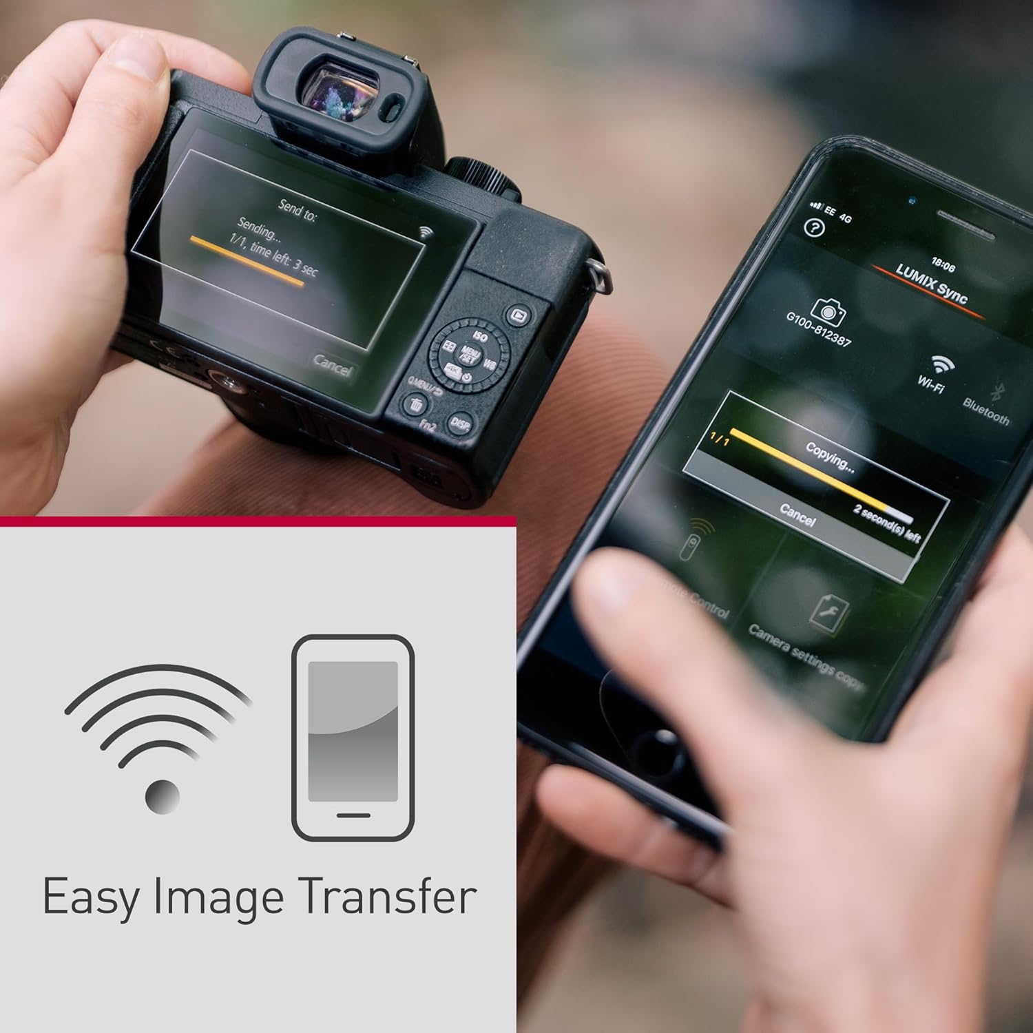 RUCKELFREIE VIDEOS: Erleben Sie nahtlose, verwacklungsfreie Videos mit dem 5-Achsen-HYBRID-I.S. in dieser tragbaren Vlogging-Kamera, ideal für flüssige Aufnahmen OPTIMIERT FÜR VLOGGING: Verbessern Sie Ihre Vlogs mit dem Video-Selfie-Modus, damit Sie im Fokus bleiben, zusammen mit Zeitlupen- und Zeitraffereinstellungen, vertikaler Videoaufnahme und einer REC-Bildanzeige für kreative Flexibilität SOFORTIGE BILDTEILUNG: Übertragen Sie Bilder per Bluetooth auf Ihr Smartphone mit der Taste „Bild senden“ (Smartphone). Mit der kompakten Digitalkamera können Sie Ihre Aufnahmen schneller als je zuvor teilen AUSSERGEWÖHNLICHE BILDQUALITÄT: Nehmen Sie atemberaubende 20,3-MP-Bilder mit dem großen MOS-Sensor ohne LPF (Low-pass Filter) und den Premium-Objektiven der Lumix G-Serie auf FREIWINKEL-MONITOR: Mit dem 180° drehbaren Freiwinkel-Monitor mit 2.360K Bildpunkten können Sie mühelos Aufnahmen zusammenstellen. Perfekt für Selfie-Videos, Outdoors und Aufnahmen aus hohen und niedrigen Winkeln VIELSEITIGE OBJEKTIVE: Lumix G Vario 12–32 mm F3.5–5.6 Objektiv (entspricht 24–64 mm im Kleinbildformat) und einem Lumix G Vario 35–100 mm F4–5.6 Objektiv (entspricht 70–200 mm) für ein Höchstmaß an Flexibilität | قیمت یورویی : 808.51€