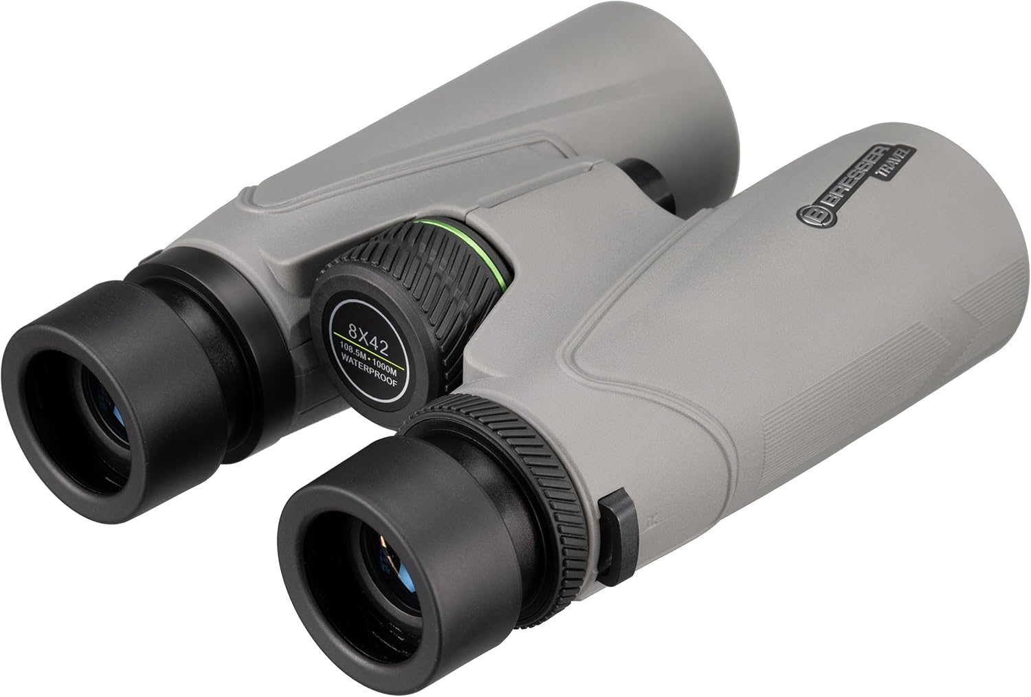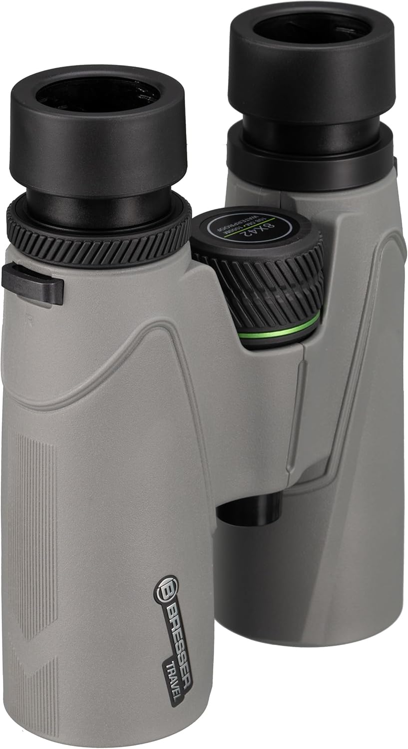 دوربین دوچشمی Bresser Travel 8x42، بزرگنمایی 8 برابر، عدسی شیئی 42 میلیمتری، منشور BaK-4، ضد آب IPX7، پر شده با نیتروژن، چشمیهای پیچشونده