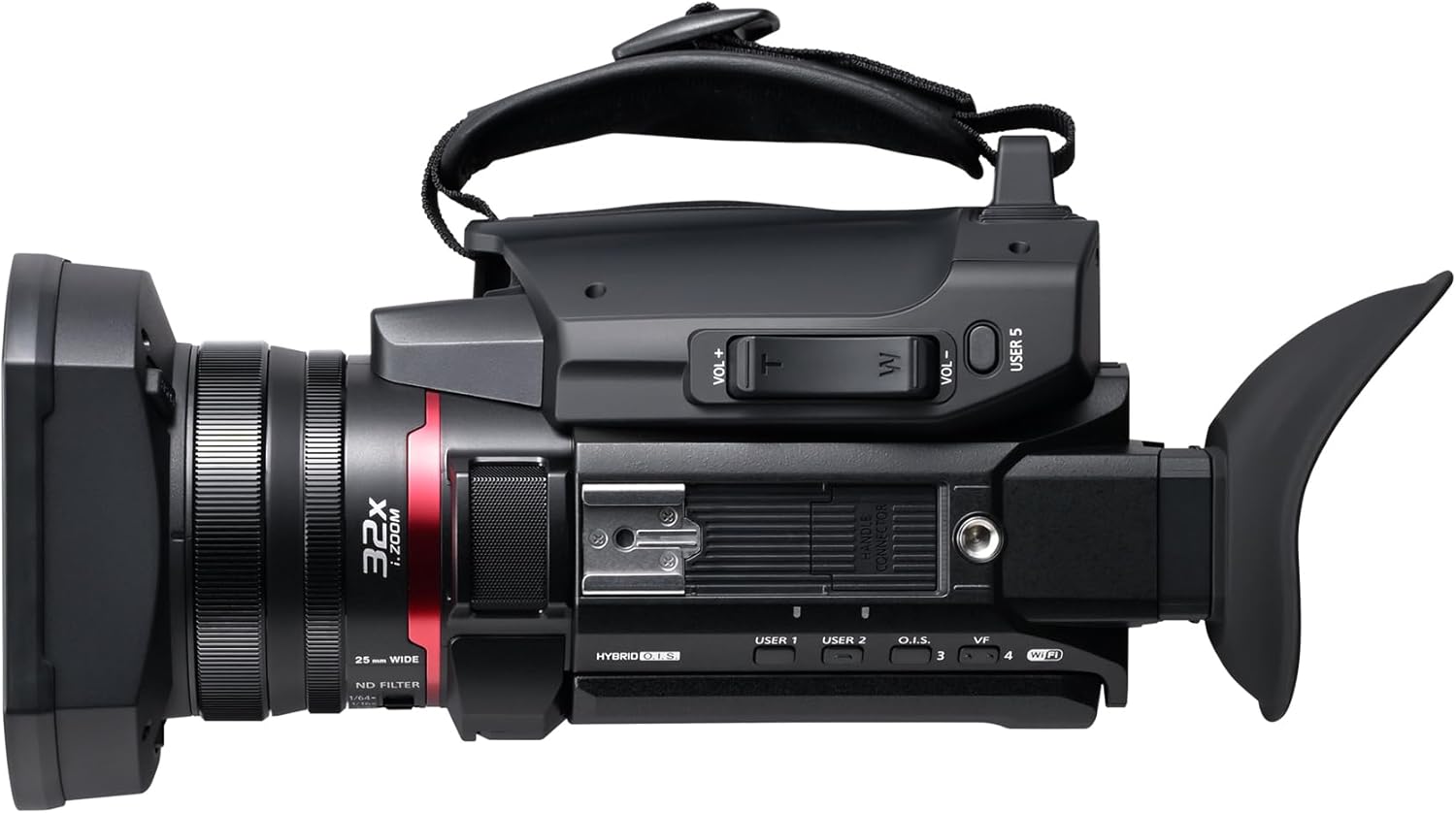 دوربین فیلمبرداری حرفهای پاناسونیک HC-X1600E 4K 60p با لنز واید ۲۵ میلیمتری، زوم اپتیکال ۲۴ برابر، لرزشگیر اپتیکال هیبریدی ۵ محوره، وایفای، USB PD، مشکی