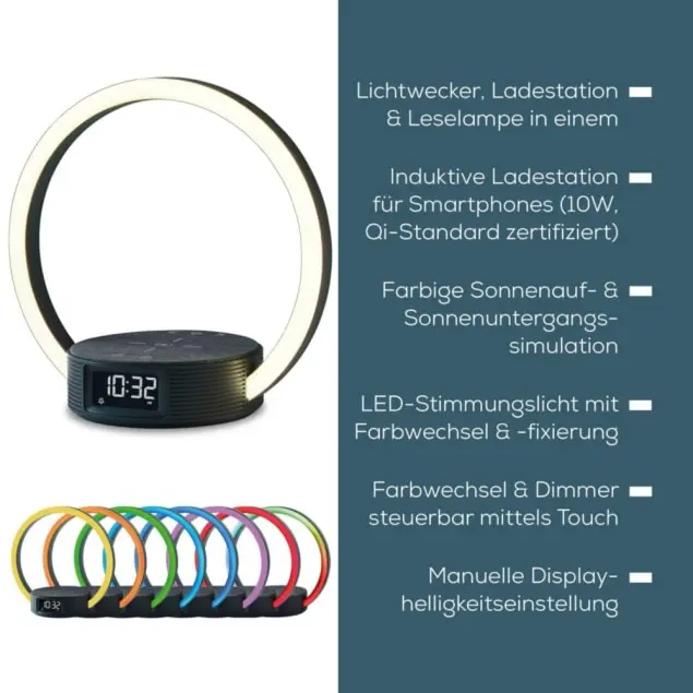 بهترین وسیله برای نظم دادن به تخت خواب: ایستگاه شارژ سریع، ساعت زنگدار و چراغ مطالعه در یک محصول . ایستگاه شارژ سریع القایی 10 واتی برای گوشیهای هوشمندبا شبیهسازیهای رنگارنگ طلوع و غروب خورشید، به طور طبیعی به خواب بروید و به آرامی از خواب بیدار شوید