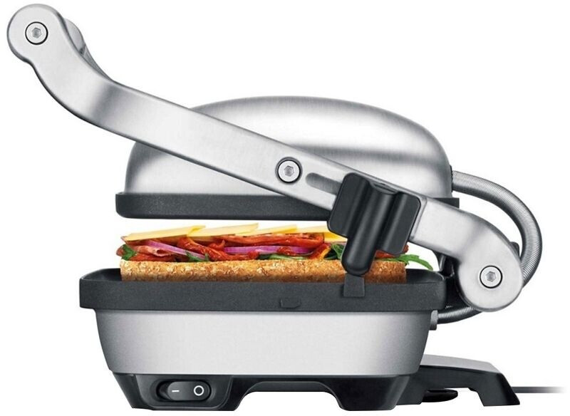 ساندویچ ساز Sage مدل The Perfect Press با بدنه استیل و سیستم فشرده‌سازی هوشمند، ساندویچ‌هایی طلایی و ترد بدون له‌شدن نان آماده می‌کند.