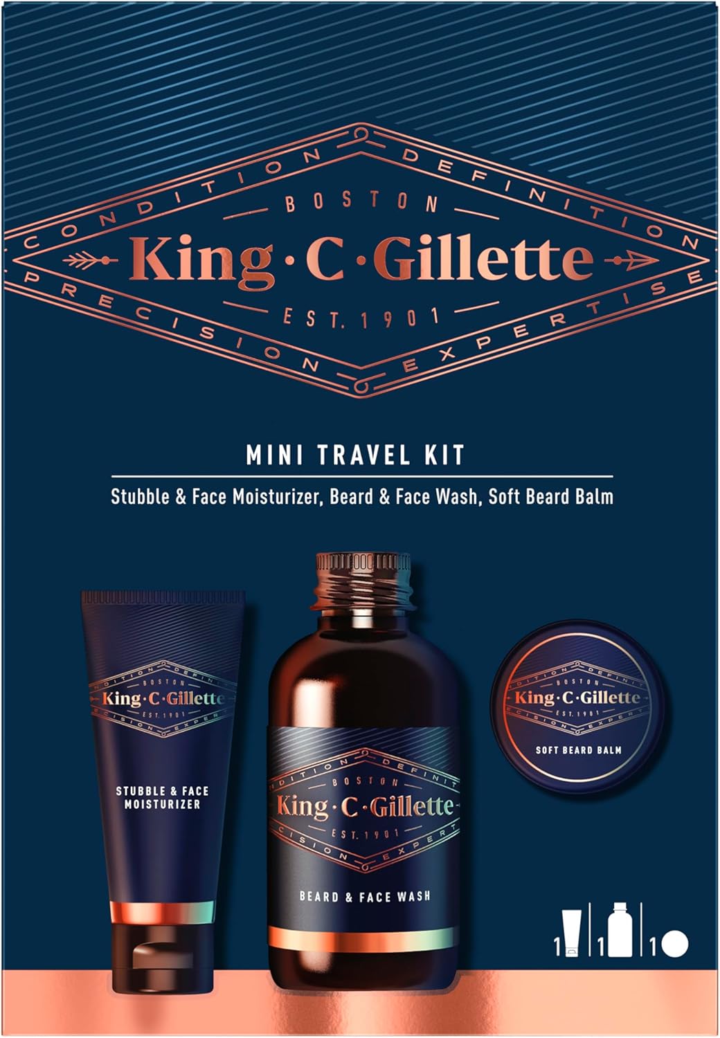 King C. Gillette Mini-Reiseset Probierset Geschenkset Bartpflege-Essentials: 3-Tagebart- & Gesichtspflege 30 ml + Bartshampoo 60 ml + Bart-Balsam 30 ml, Geschenk für Männer Bartpflege Probierset | قیمت یورویی 14.99€
