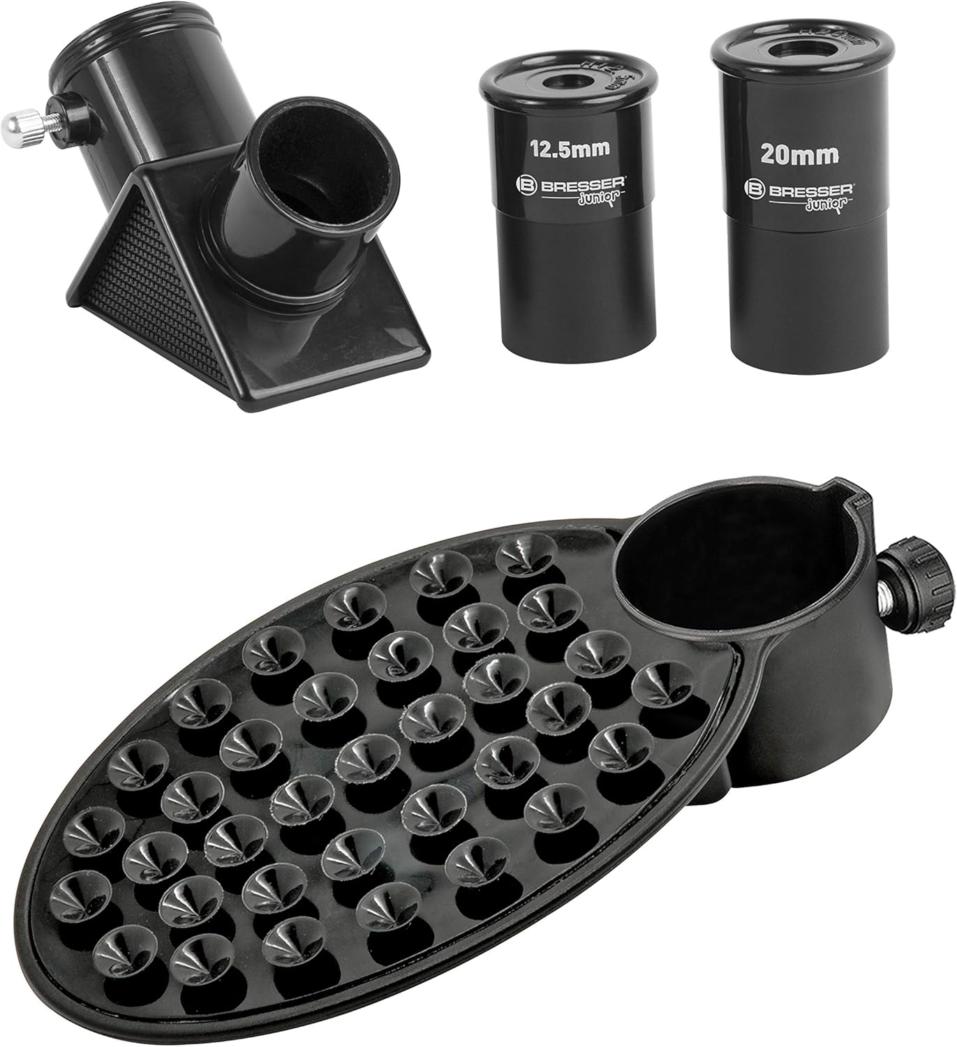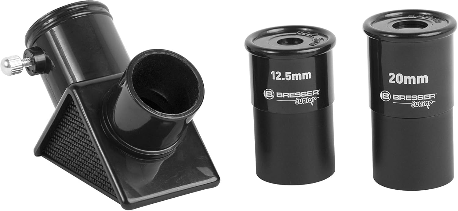 Bresser Junior Mikroskop & Teleskop Set mit Mikroskop 40x-640x Vergrößerung und 40/400mm Teleskop für Kinder ab 8 Jahren orange Single لینک آمازون : https://www.amazon.de/dp/B07VTQ36XT?th=1&psc=1 مجموعه مقدماتی برای دنیای نجوم و جهان میکروسکوپی. مجموعه مقدماتی شامل تلسکوپ، میکروسکوپ و لوازم جانبی. تلسکوپ با سهپایه، همچنین قابل استفاده به عنوان دوربین نقطهای. قطر عدسی شیئی: ۴۰ میلیمتر، فاصله کانونی: ۴۰۰ میلیمتر. بزرگنمایی: ۲۰ برابر و ۳۲ برابر. میکروسکوپ با بزرگنمایی ۴۰ تا ۶۴۰ برابر. بسته لوازم جانبی جامع برای راهاندازی آسان. محدوده میکروسکوپ تحویل: ۵ ظرف جمعآوری، شامل ۳ ظرف خالی، ۱ ظرف حاوی مخمر و ۱ ظرف حاوی تخم میگوی آب شور، دستگاه جوجهکشی، موچین، ذرهبین، پیپت، میکروکات، عدسی چشمی زومدار، پیمانه، جعبه حاوی اسلاید، لامپ یدکی، ۳ باتری قلمی اقلام همراه تلسکوپ: تلسکوپ، دفترچه راهنما، آینه زنیت، سه پایه رومیزی، چشمیها: ۱۲.۵ و ۲۰ میلیمتری، نگهدارنده گوشی هوشمند