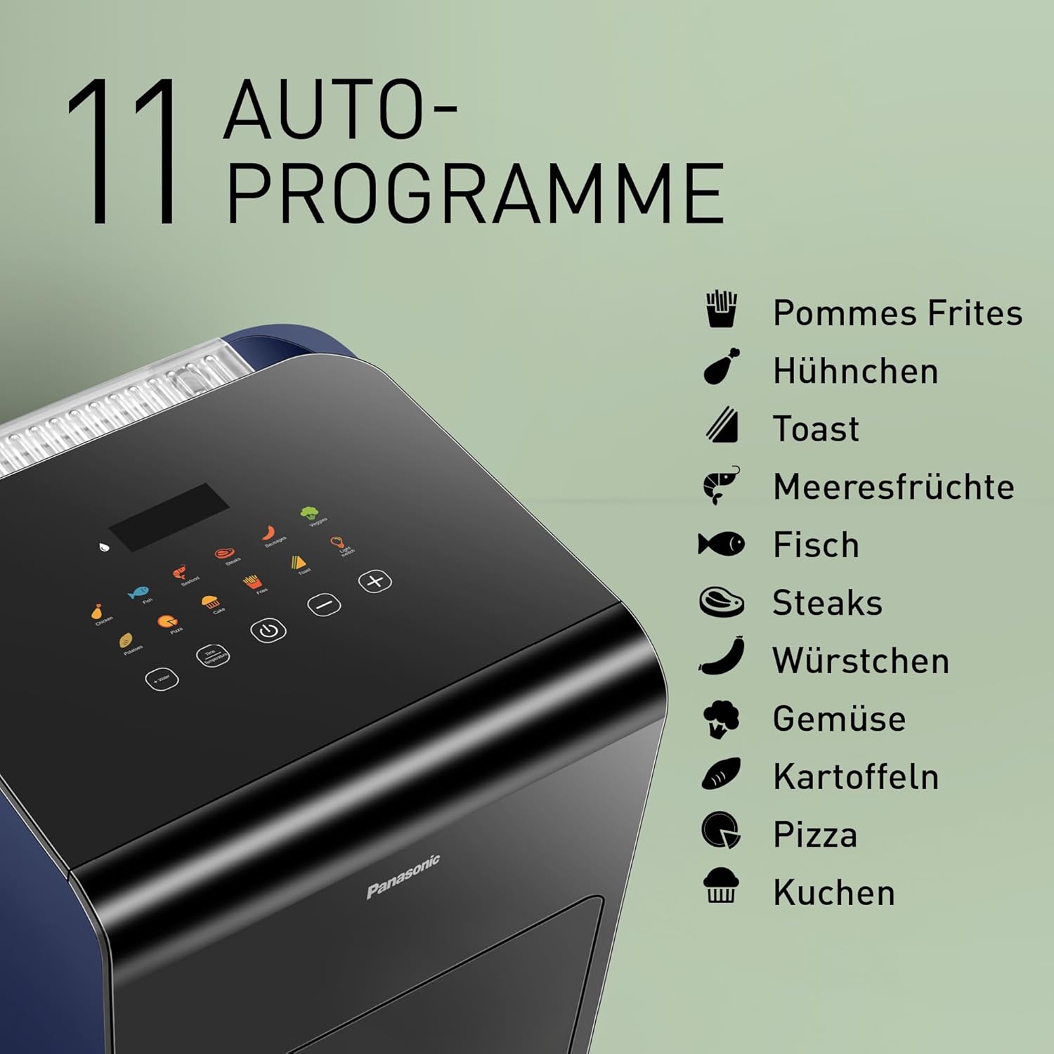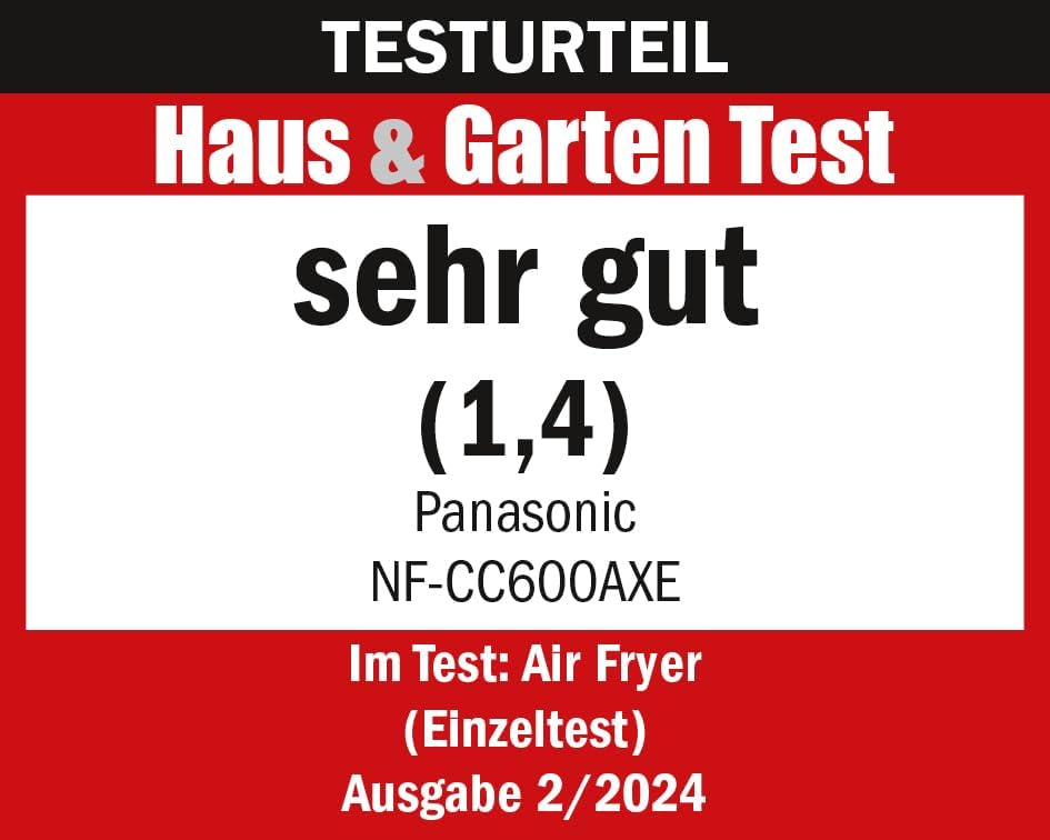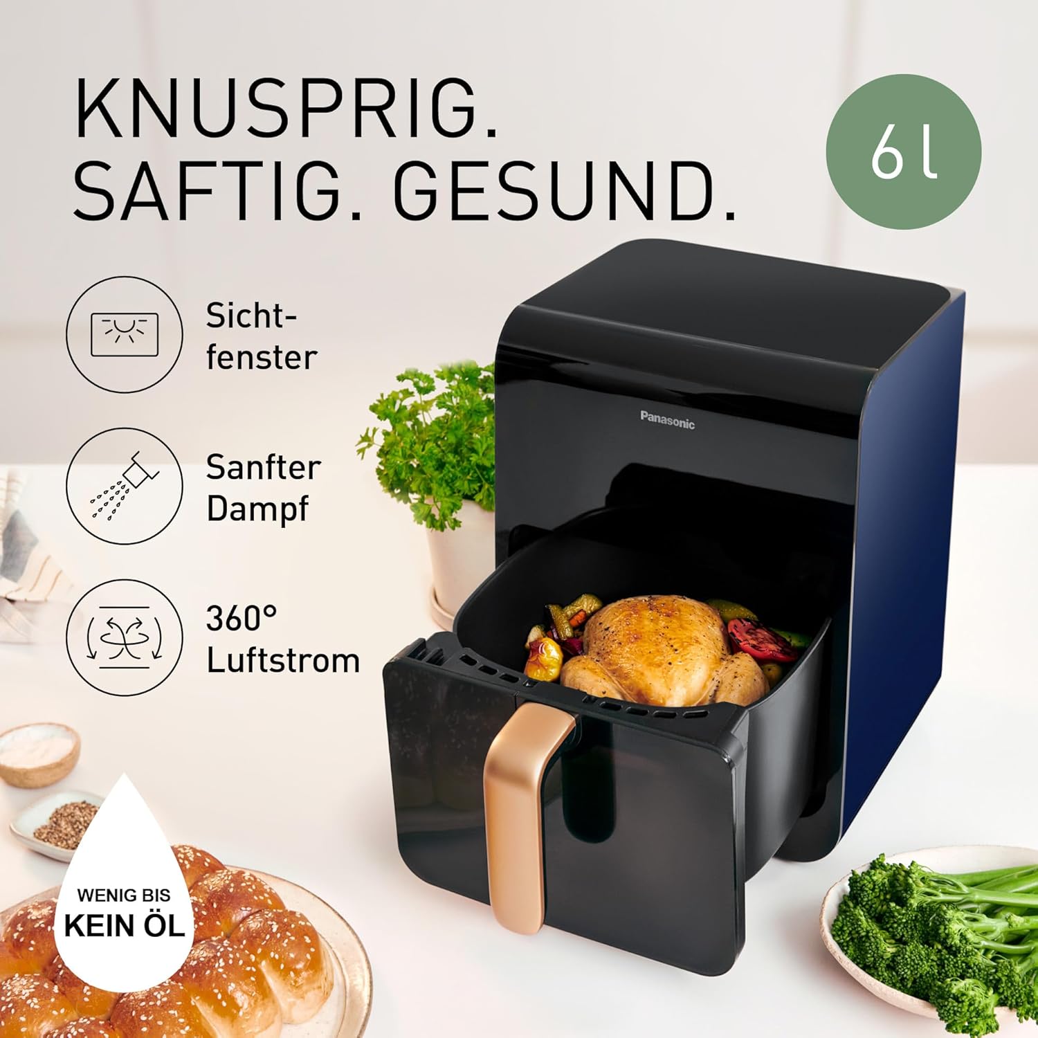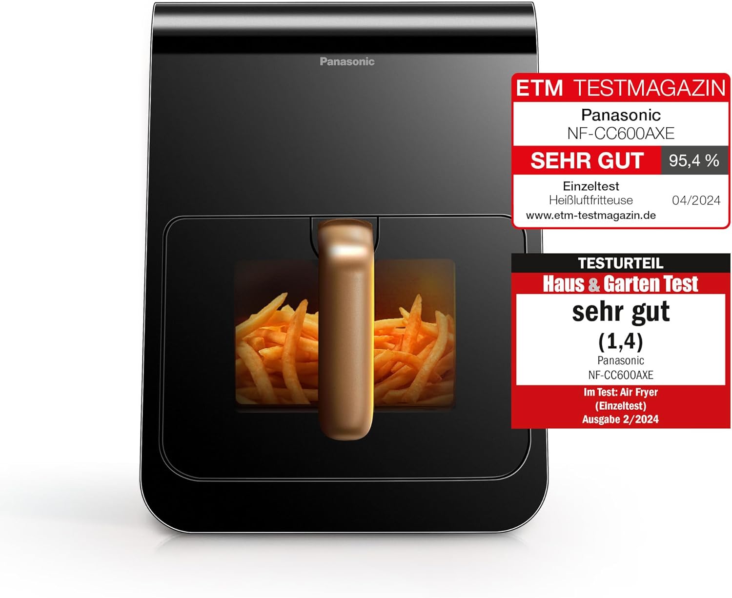 Panasonic NF-CC600AXE Air Fryer mit Sichtfenster, 6 l, 80–200 °C, digitaler Timer & LCD-Display, sanfte Dampfzugabe, 11 Voreinstellungen, einfache Reinigung, Schwarz mit Griff in Roségold | قیمت یورویی 99.99€