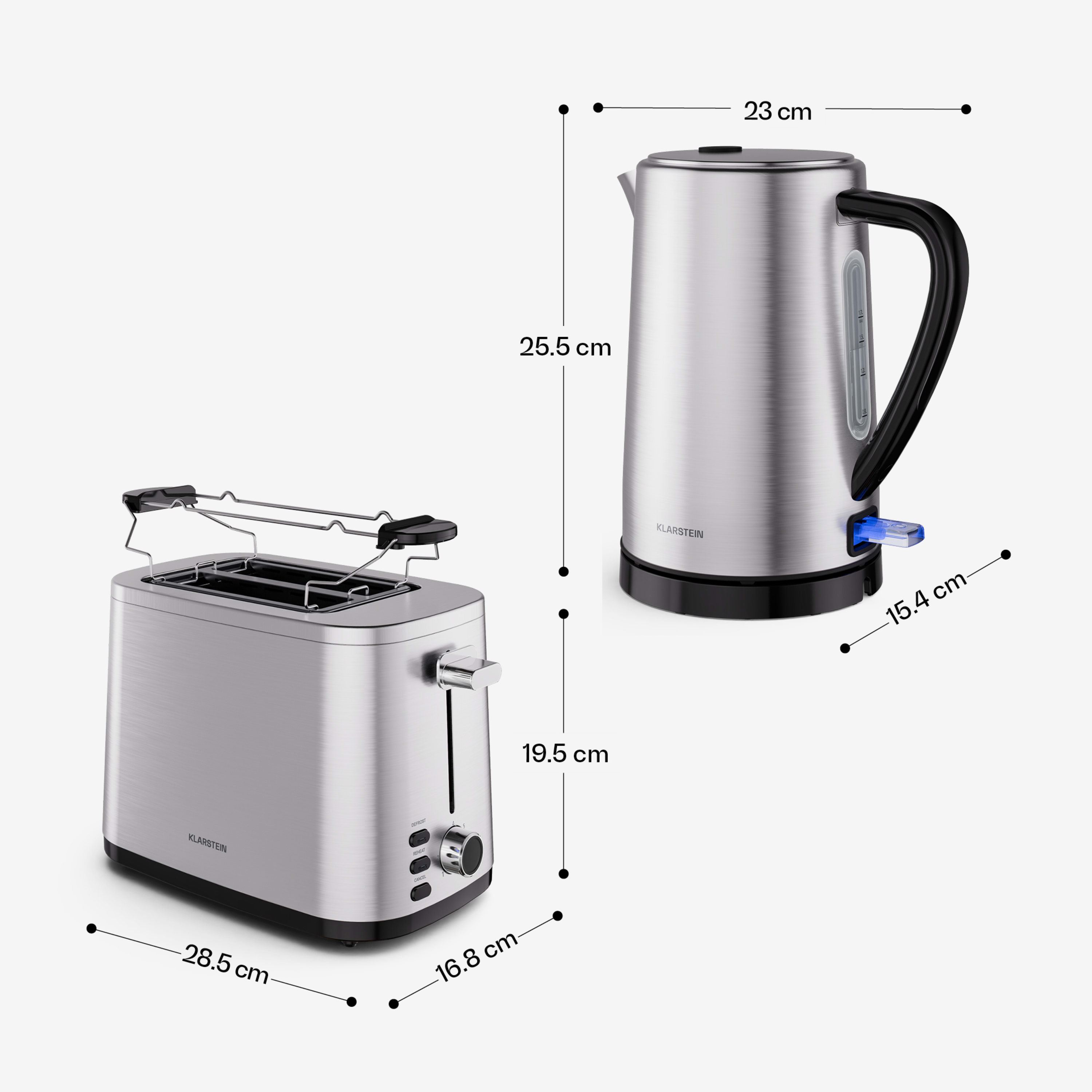 سرویس صبحانه ساده Klarstein Verosteel با استیل ضد زنگ با کیفیت بالا و عناصر مشکی براق ظریف، توجه را به خود جلب میکند. این سرویس صبحانه به طور یکپارچه با فضاهای مدرن ترکیب میشود. این سرویس صبحانه که بخشی از سری طراحی Verosteel است، مینیمالیسم، آرامش و هندسه تمیز را در خود جای داده و آن را به یک افزودنی طبیعی برای هر آشپزخانه مجهز تبدیل میکند. این سرویس شامل یک توستر ۲ تکهای با قدرت ۸۰۰ وات و یک کتری با ظرفیت ۱.۷ لیتر است. این توستر دارای ۷ سطح مختلف برشته کردن نان است و دارای یک گرمکن نان برای گرم کردن رولها و کروسانها میباشد. کتری با قدرتی تا ۲۲۰۰ وات، مجهز به یک فیلتر رسوب آهک داخلی است. آیا میخواهید آشپزخانهای یکدست، ساده و زیبا ایجاد کنید؟ همین حالا تمام مجموعه لوازم خانگی Verosteel ما را کشف کنید و یک تجربه آشپزخانهای زیبا و هماهنگ ایجاد کنید!