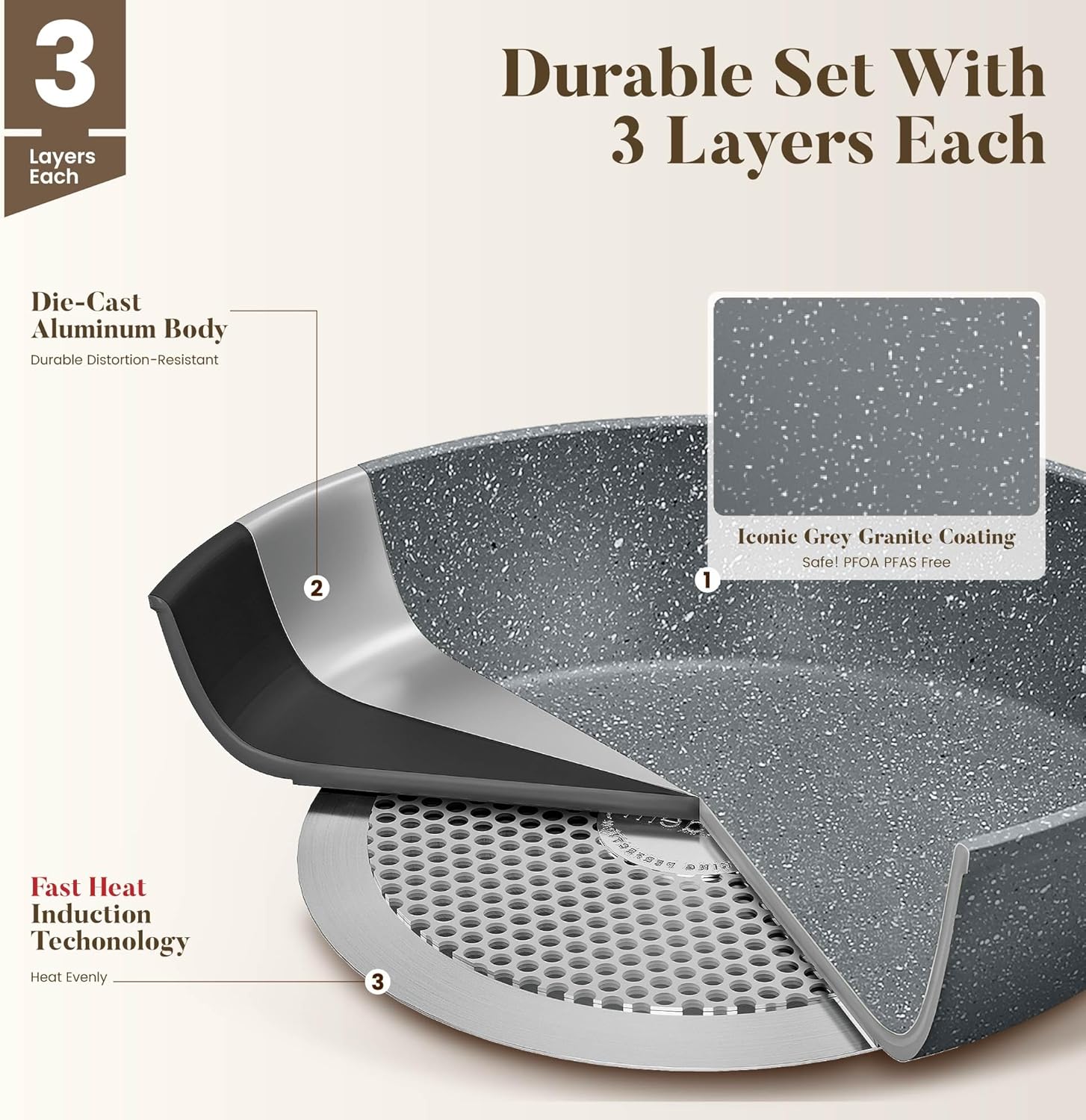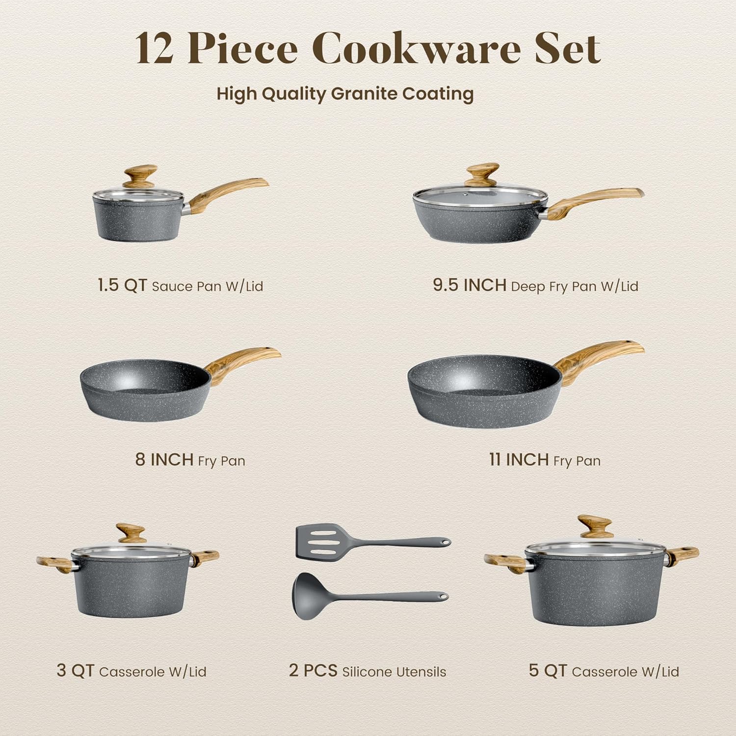 سرویس قابلمه القایی کیچن آکادمی - سرویس قابلمه گرانیتی خاکستری ۱۲ پارچه، قابلمه و ماهیتابه نچسب، بدون PFOA و PFOS