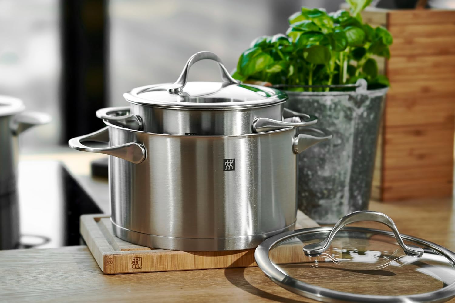 5-teiliges Kochtopf-Set im modernen Design für alle Herdarten einschließlich Induktionsherd, Ideal geeignet als Grundausstattung und als Ergänzung zu bestehenden Töpfen Energiesparendes Kochen: Gleichmäßige, schnelle Wärmeverteilung und optimale Speicherung dank Aluminiumkern, Dicht schließende, flache Glas-Deckel Bequeme Handhabung: Genaues Dosieren dank praktischer Innenskala, Gerundete Edelstahlgussgriffe Griffe für eine sichere und bequeme Handhabung, Zielsicheres Ausgießen ohne Nachtropfen dank gefaltetem Schüttrand Hochwertige Verarbeitung aus rostfreiem Edelstahl 18/10: Hygienisch und geschmacksneutral, Pflegeleichte und kratzunempfindliche Oberfläche, Spülmaschinengeeignet Lieferumfang: 1x ZWILLING Kochtopf-Set, 5-tlg., Essence, Inhalt: 3x Kochtopf + Deckel (Ø 16 cm/2 L, Ø 20 cm/3,5 L, Ø 24 cm/6), 1x Bratentopf + Deckel (Ø 20 cm/3 L), 1x Stieltopf (Ø 16 cm/1,5 L), Material: Edelstahl 18/10, 1006145 | قیمت یورویی : 99.95€