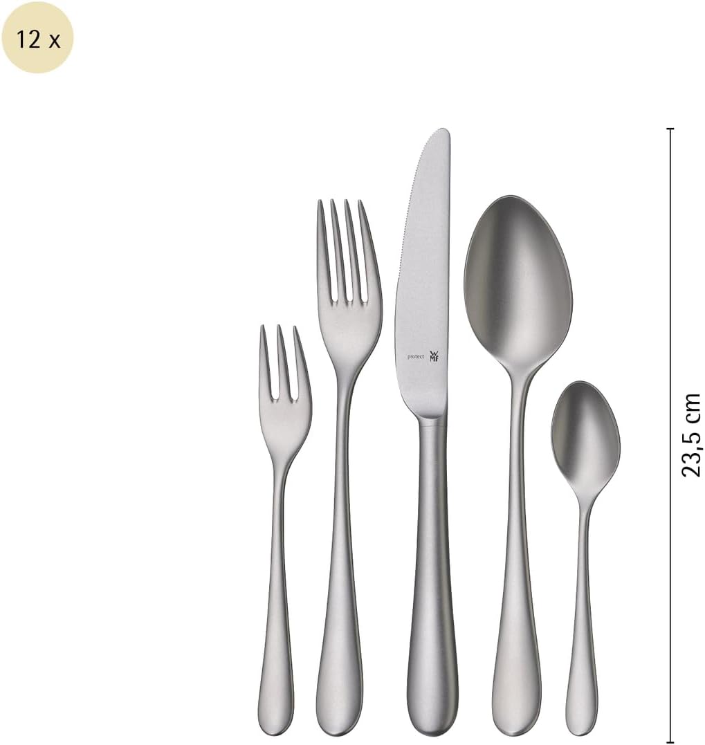 Das Merit Besteck von WMF, macht aus jedem Tisch einen Blickfang. Inhalt: 66-teiliges Besteck-Set für 12 Personen: 12 Menuegabeln, 12 Menuemesser, 12 Menuelöffel, 12 Kuchengabeln, 12 Kaffeelöffel, 1 Salatbesteck (2-teilig), 1 Schöpflöffel, 1 Kuchenheber, 1 Serviergabel, 1 Servierlöffel Premium-Besteck von WMF mit edler Optik und angenehmer Haptik, das ergonomisch perfekt in der Hand liegt Cromargan protect, das patentierte Härteverfahren für höchste Widerstandskraft gegen Gebrauchsspuren und Kratzer - für langanhaltende, makellose Schönheit Spülmaschinenfest für eine schnelle und mühelose Reinigung | قیمت یورویی : 606.96€