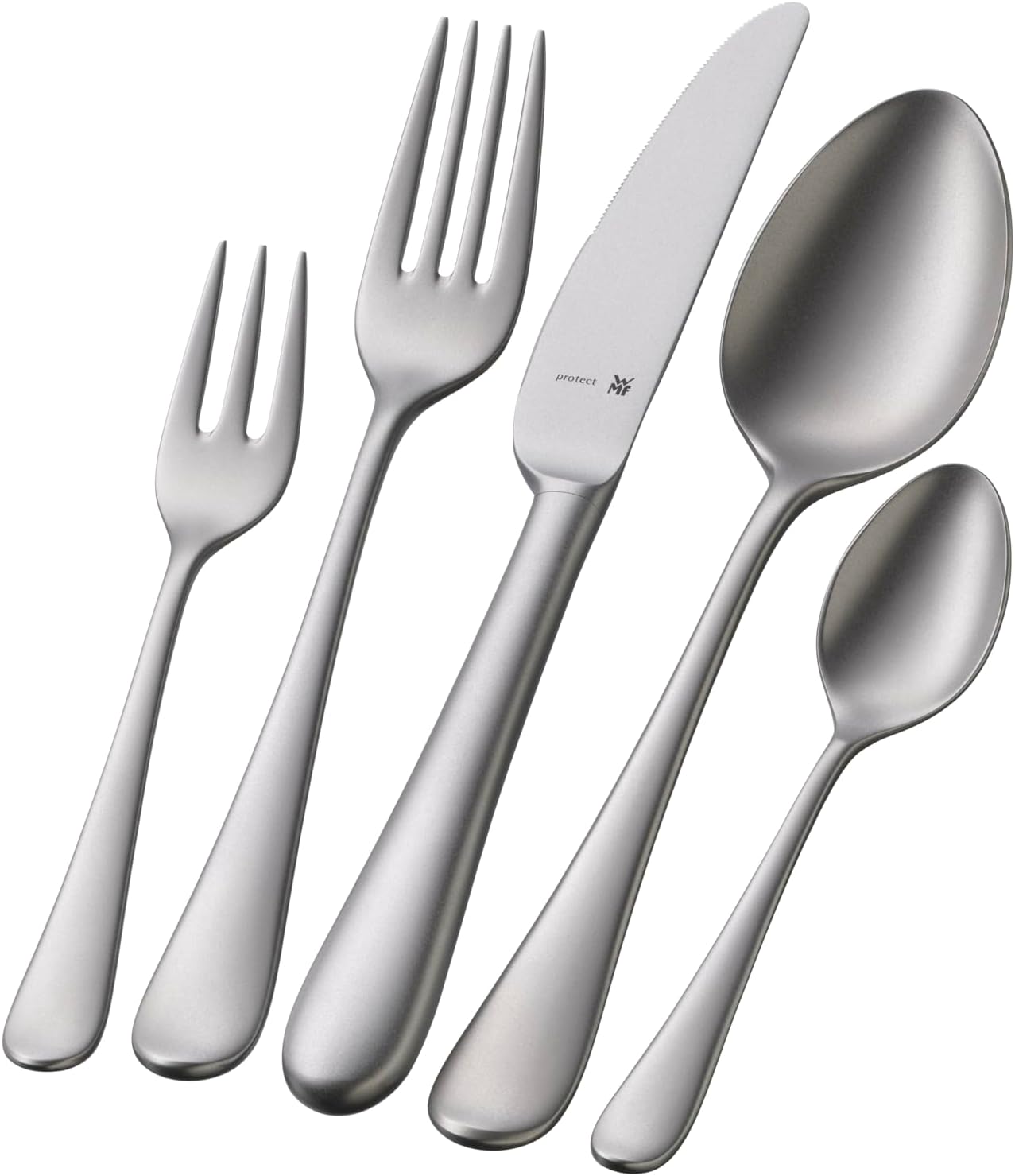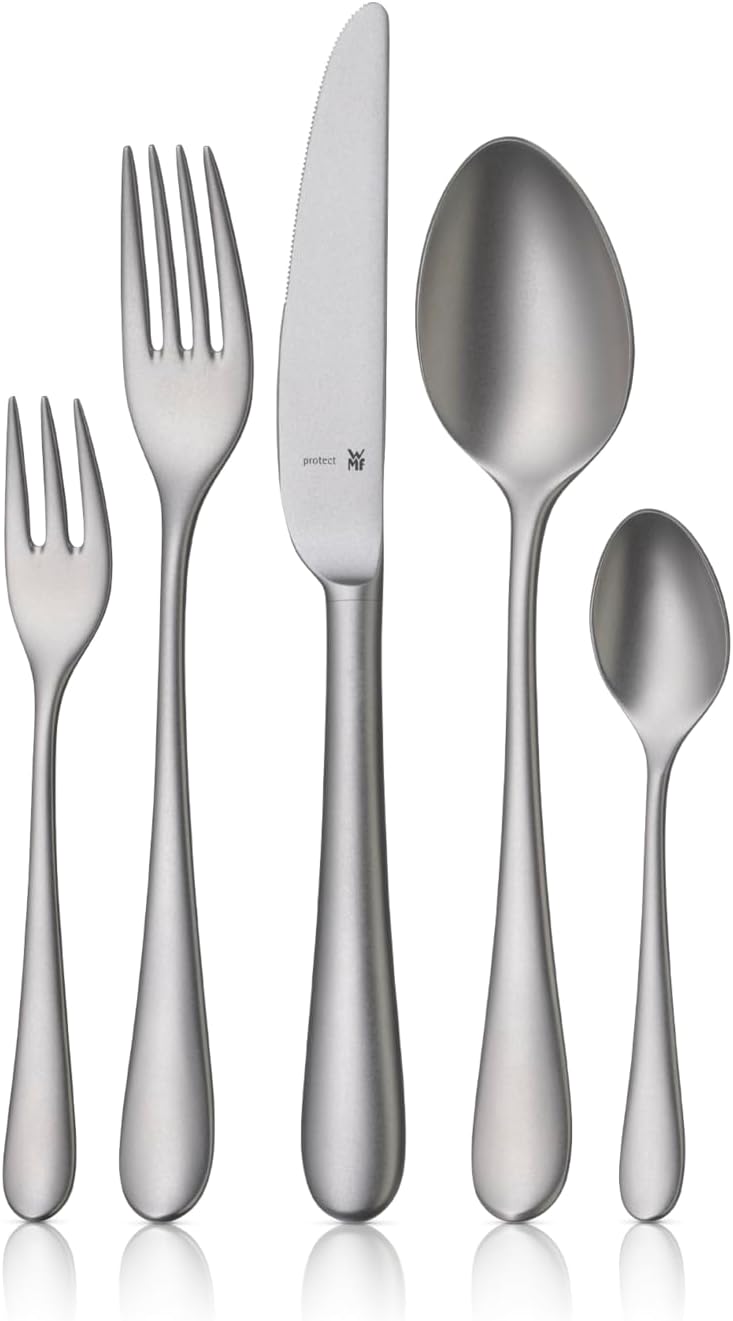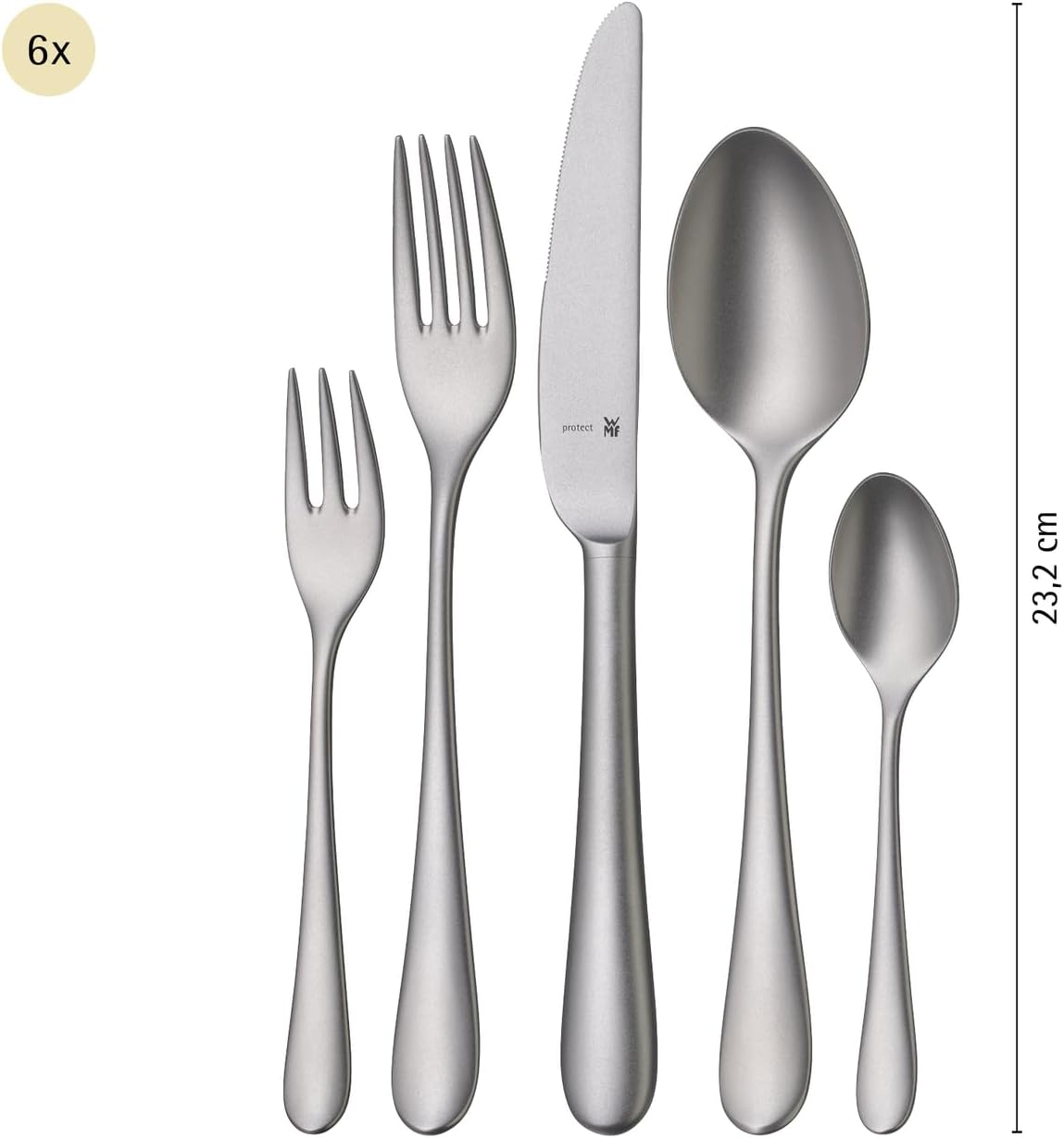 WMF Merit Besteck-Set, 30-teiliges Set, 6 Personen, sandgestrahlt, Ergonomisch, Cromargan protect®, Spülmaschinenfest, Geschmiedete Klingen, Besteckbox 1140916310 | قیمت یورویی 399€
