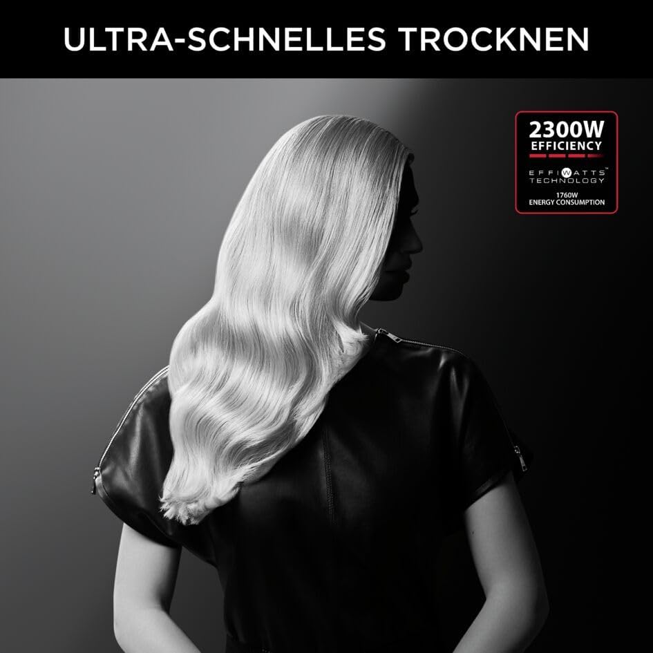 Leistungsstarkes Trocknen: Leistung von 2300 Effiwatt, entspricht einem Haartrockner von 2300 W bei einem tatsächlichen Energieverbrauch von lediglich 2100 W (gemäß Norm IEC 61855; 2100 W-Modell im Vergleich zu einem 2300 W-Modell desselben Herstellers) Individuelle Einstellungen: 6 Geschwindigkeits-/Temperaturkombinationen für eine einfache Einstellung von Luftstrom und Temperatur für ein individuell abgestimmtes Trocknen der Haare Gesundes und geschütztes Haar: Die Thermo Control-Einstellung des Haartrockners sorgt für geschütztes Haar und die ideale Temperatur, um jeden Tag die natürliche Schönheit des Haars zu bewahren Konzentrierter Luftstrom & präzises Trocknen: Der Aufsatz für die Stylingdüse verspricht einen konzentrierten Luftstrom für präzises Trocknen und perfekte Ergebnisse; praktisch und benutzerfreundlich: Das 1,8-m-Netzkabel sorgt für hohe Bewegungsfreiheit, im modernsten ergonomischen Design für einen bequemen Griff und einfacheres Styling Lang anhaltender Style: Die Kaltlufttaste fixiert Ihre Frisur am Ende, für langanhaltende Ergebnisse und einen bestechenden Look; leichte Reinigung: Abnehmbares Gitter für müheloses Reinigen und lang anhaltende Leistung | قیمت یورویی : 23.99€