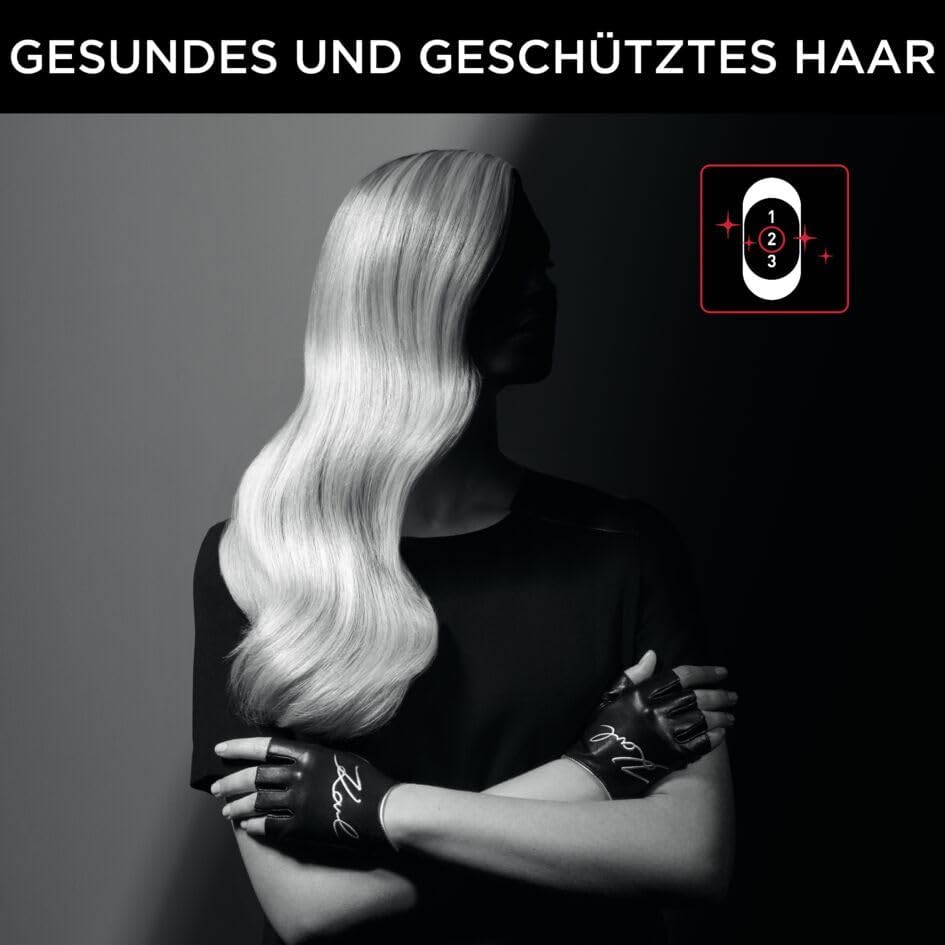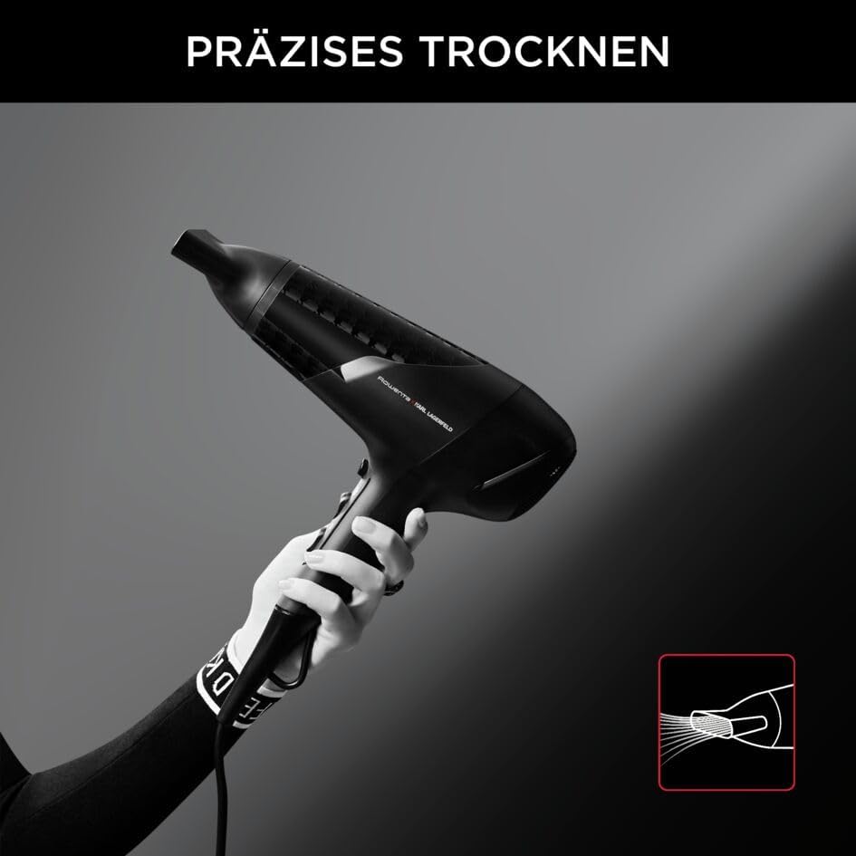 Rowenta x Karl Lagerfeld CV581L Studio Dry Haartrockner, energiesparende Effiwatt-Technologie, 6 Geschwindigkeits-/Temperaturstufen, Thermo Control, Konzentrator, Kaltluftstufe, Schwarz/Rot Schwarz Kl | 1 Zubehör