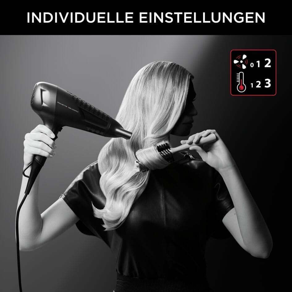 سشوار خشک استودیویی Rowenta x Karl Lagerfeld CV581L، فناوری Effiwatt کممصرف، 6 حالت سرعت/دما، کنترل حرارتی، متمرکزکننده، کول شات، مشکی/قرمز | 1 عدد لوازم جانبی